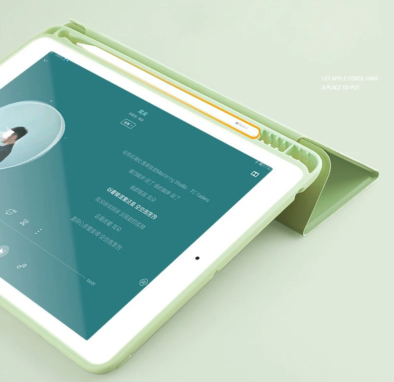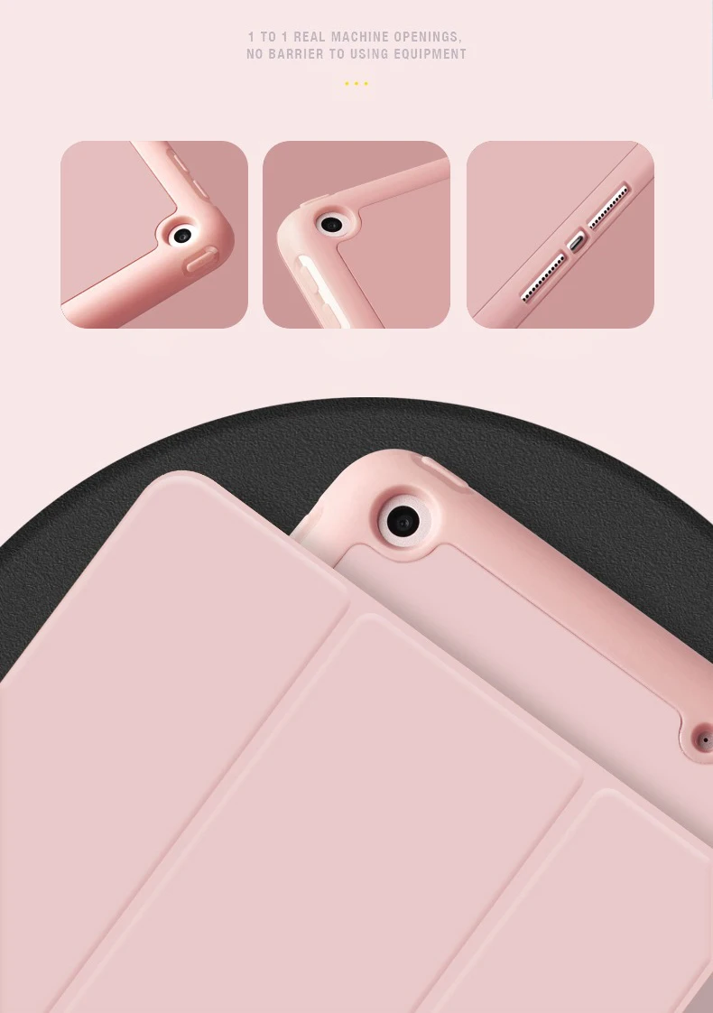 Передняя трехслойная смарт-крышка изготовлена из полиуретана и мягкого трогательного прорезиненного покрытия на внутренней стороне и внешней стороне задней оболочки, которая чувствует себя хорошо в руках и делает ее менее скользкой. Это цельный чехол, спереди и сзади не отделяется