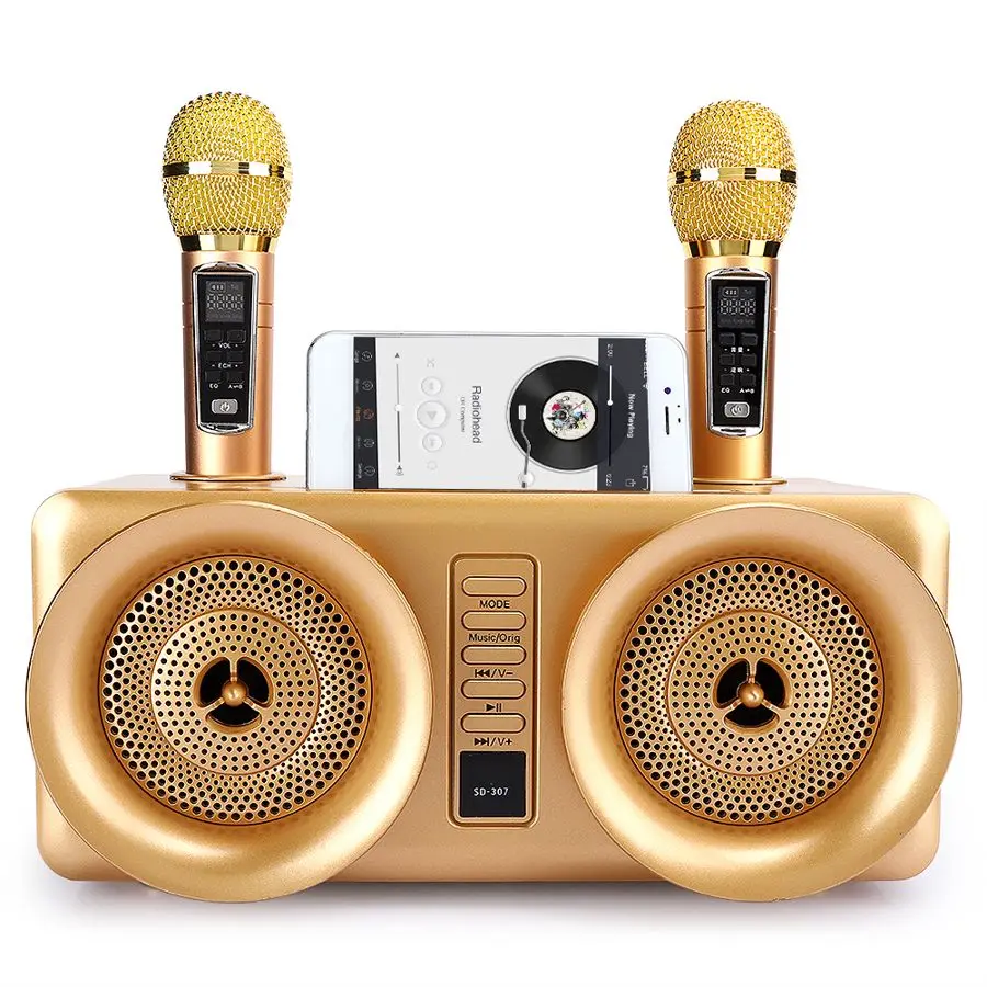 Семья караоке звук Bluetooth динамик двойной беспроводной микрофон подключение ТВ Поддержка Запись песня