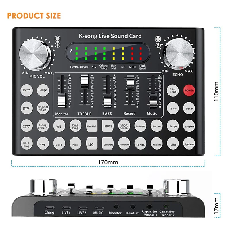 Идеально подходит для Стримеров и трансляций, чтобы сделать live-шоу, сделайте вас профессиональным якорем, на котором работает эта live-звуковая карта. Мощный чип DSP обеспечивает более стабильный сигнал для лучшего качества звука.