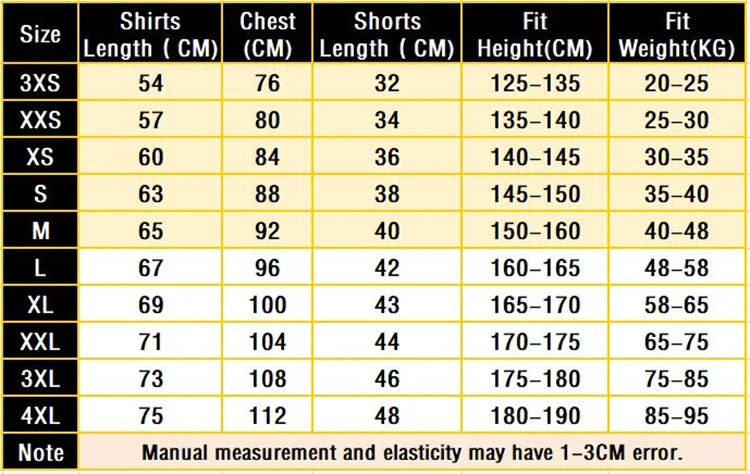 Размер 3XS, подходит для роста 125-135 см, вес 20-25 кг; Размер XXS, подходит для роста 135-140 см, вес 25-30 кг; Размер XS, подходит для роста 140-145 см, вес 30-35 кг; Размер S, подходит для роста 145-150 см, вес 35-40 кг; Размер M, подходит для роста 150-160 см, вес 40-48 кг; Размер L, подходит для роста 160-165 см, вес 48-58 кг; Размер XL, подходит для роста 165-170 см, вес 58-65 кг; Размер XXL, подходит для роста 170-175 см, вес 65-75 кг; Размер 3XL, подходит для роста 175-180 см, вес 75-85 кг; Размер 4XL, подходит для роста 180-190 см, вес 85-95 кг.