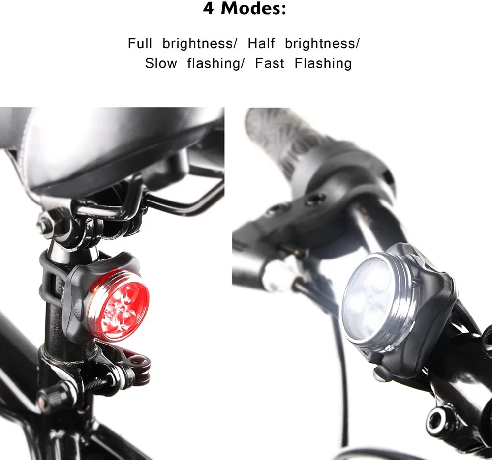 2. Четыре светильник режим варианты: головной светильник и хвост светильник имеют один-сенсорный выключатель с четыре разных светильник ing режимах в зависимости от ваших предпочтений. Включает полную яркость, половину яркости, быстрое мигание и медленное мигание.