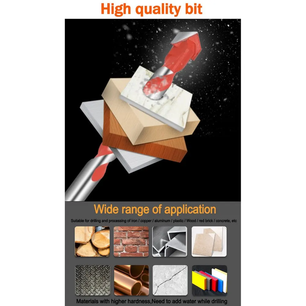 Этот продукт подходит для плитки/цементной стены/стекла/металла/материала и других операций. Так как металлические изделия легко окисляются в воздухе, продукт слегка ржавеет или ржавеет, что не влияет на использование сверл