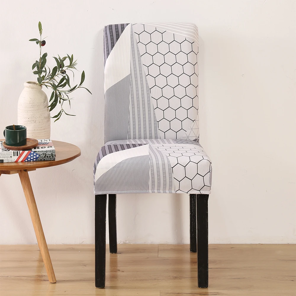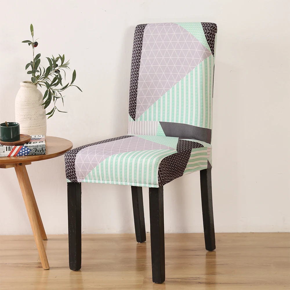 1Pc Geometric style Chair Cover Elastic Fabric Soft Chair Covers Dust-proof Protector Dining Seat Restaurant Protect