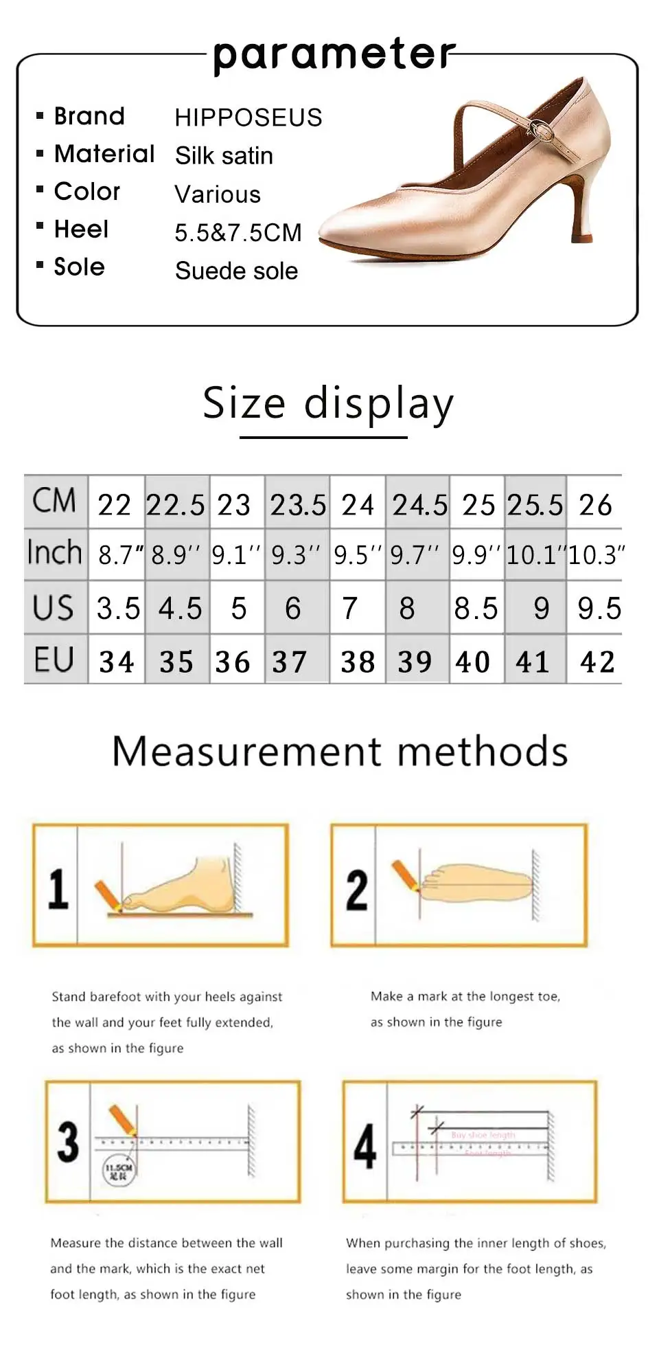 Hipposeus Latin Dance Shoes Women Closed Toe Ballroom Ladies Girls Cha Cha Tango Modern Dancing Shoes Sandals Silk Satin Indoor