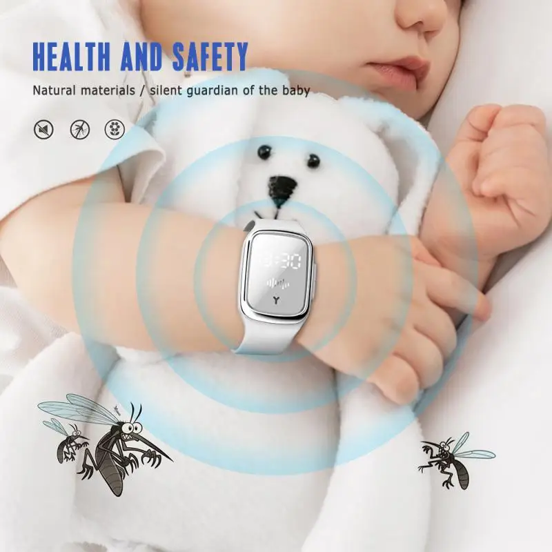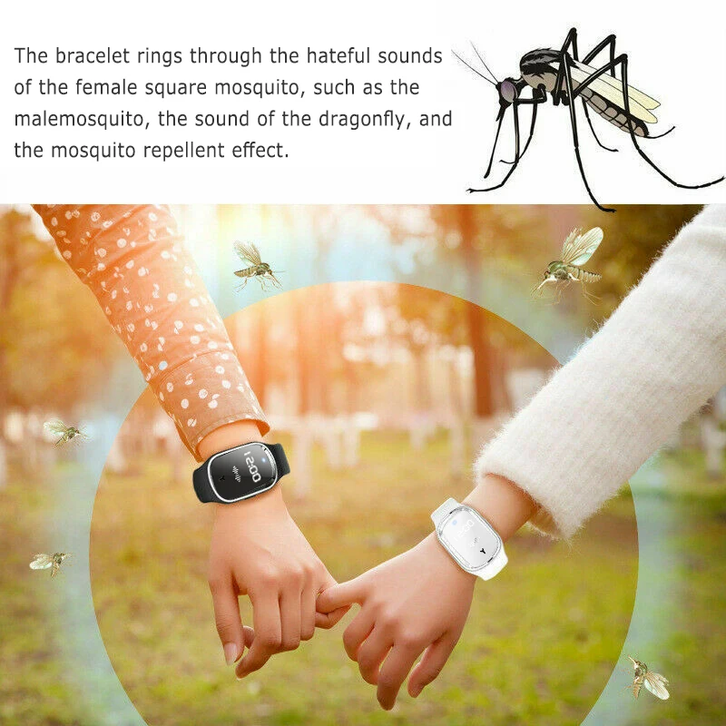 Новый ультразвуковой браслет-репеллент от комаров, светодиодный дисплей с функцией отображения времени.