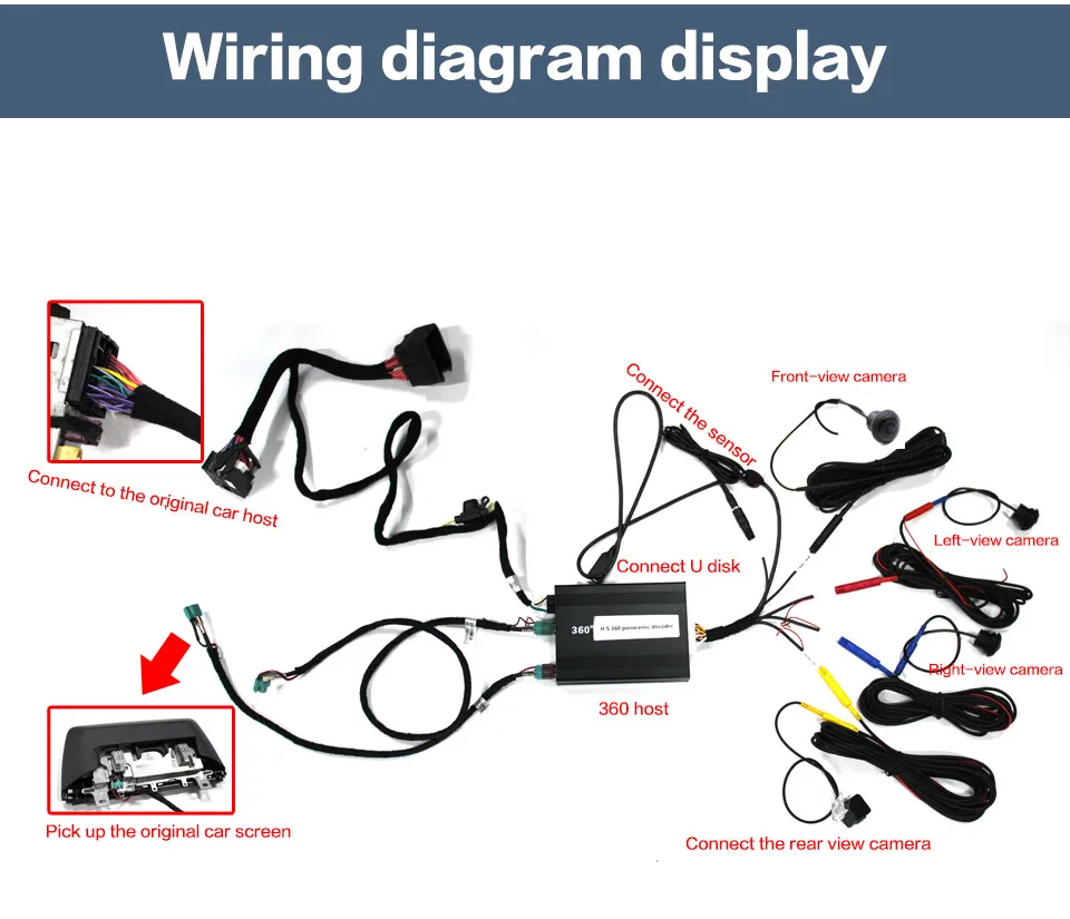 Применимый к оригинальному экрану, дополнительный экран дисплея не подходит для установки этой панорамной камеры с углом обзора 360 градусов