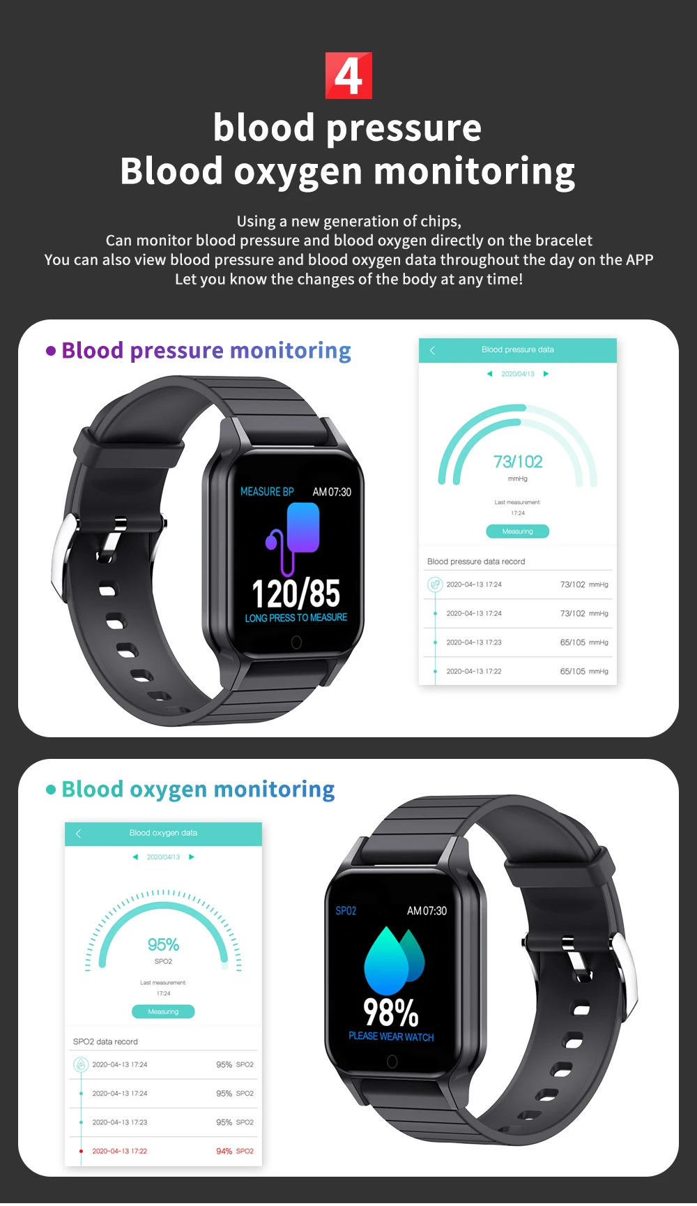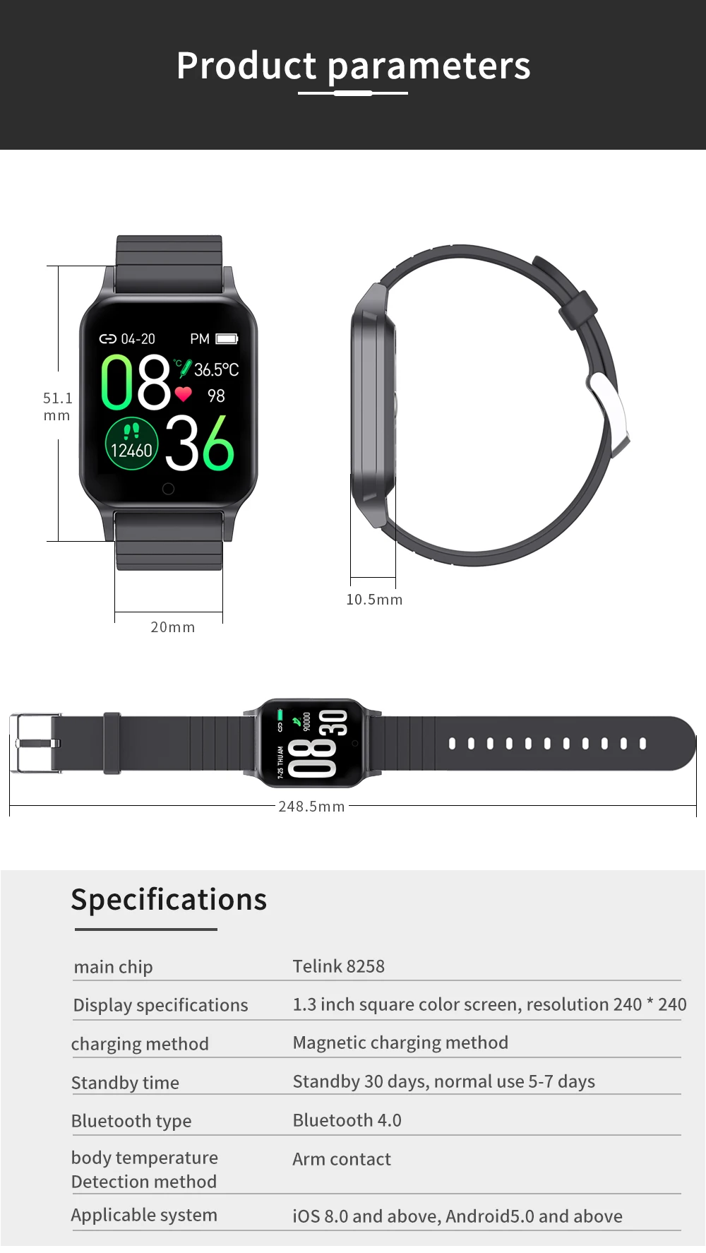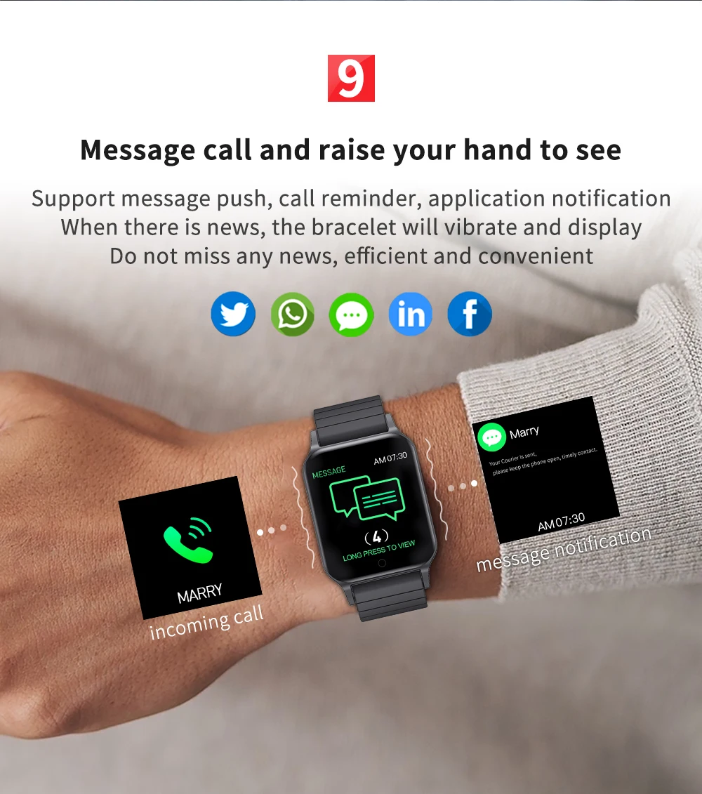 Другие функции: поверните запястье на яркий экран, отображение времени, удаленная фотография, не беспокойте настройки режима, найдите браслет, пользовательский стиль домашней страницы, браслет отказывается отвечать на телефон, поддержка обновления воздуха приложения, напоминания о питьевой воде, напоминания о соответствии, погоде