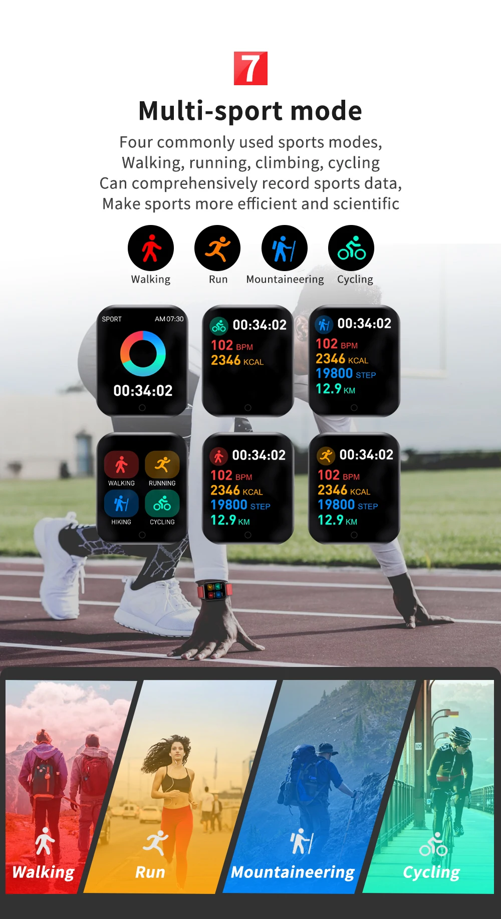 Спортивная запись: подсчет шагов, время упражнений, пробег упражнений, потребление калорий, мониторинг сна, сохранение 30 дней данных об упражнениях/сне