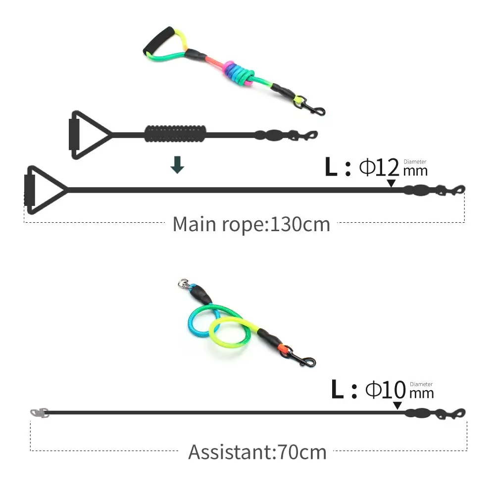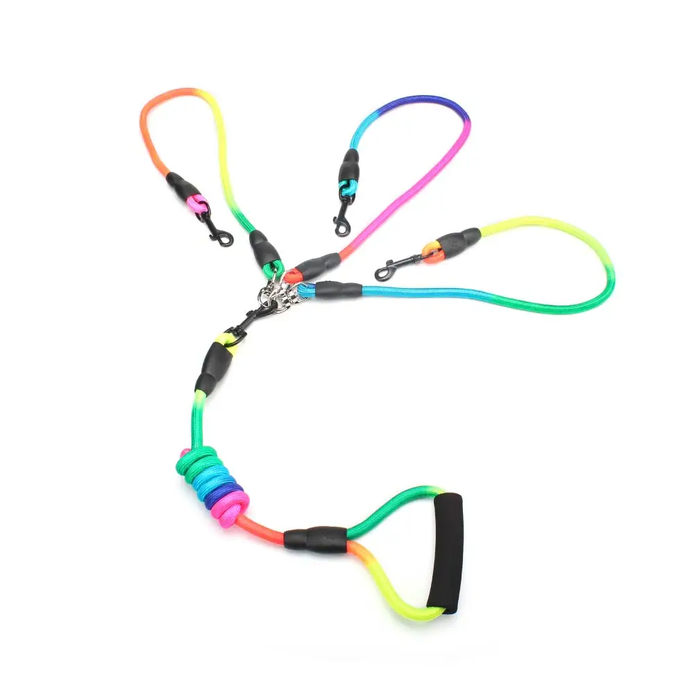 Новый Радужный поводок для собак, нейлоновый Съемный поводок для домашних животных, ручка из пенопласта, 1 поводок для 2 или 3 или 4 собак, Круглый поводок для собак