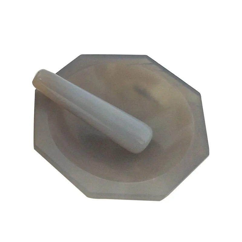 Агатовый раствор и Агатовая чаша: в основном для раздавливания твердых веществ или равномерного смешивания твердых веществ. Прибор подходит для измельчения и анализа небольших образцов внутри лаборатории. Передовая шлифовка Фармацевтическая фабрика обладает высокой прочностью на сжатие и устойчивостью к воздействию кислот и щелочей.