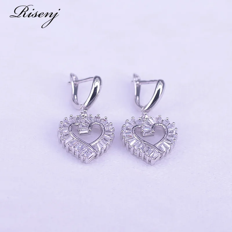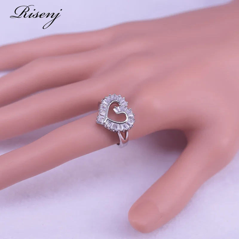 Уникальный дизайн, сердце, Стерлинговое Серебро 925 пробы, ювелирный набор, топ, кубический циркон, костюм, набор украшений для женщин, серьги, кольцо, ожерелье, набор