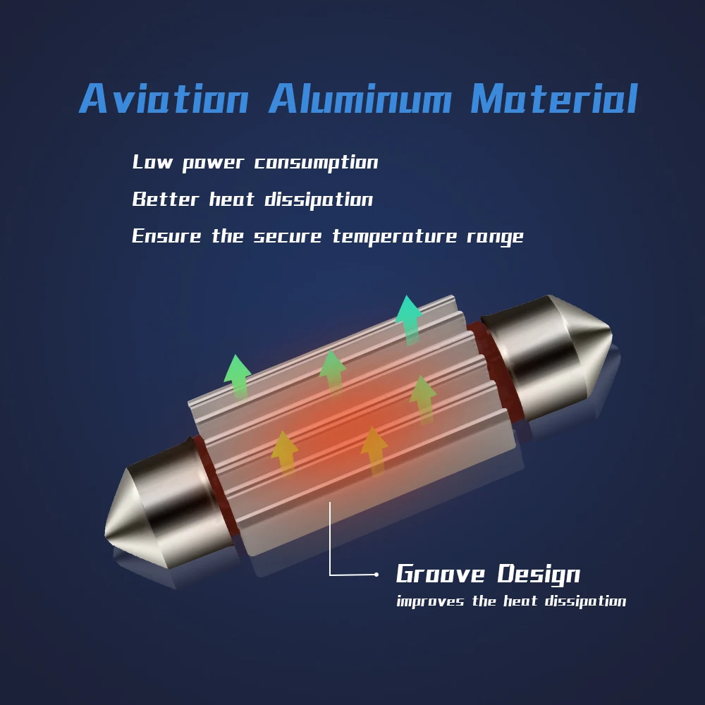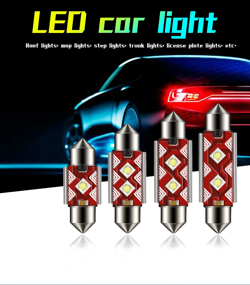 -Модель чипа: 3535 -Количество чипов: 2 шт. -Цвет: белый -Тип разъема: C5W Festoon-36MM -Напряжение: 12 В -Мощность: 6 Вт/шт. -Цветовая температура: 6500K -Световой поток: 1200лм -Срок службы: 30000 часов -Материал: алюминий -Вес: 3 г/шт.
