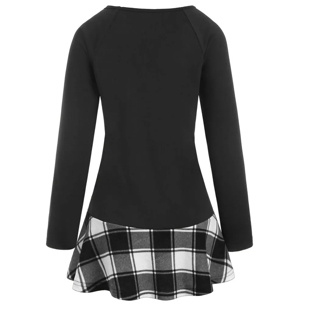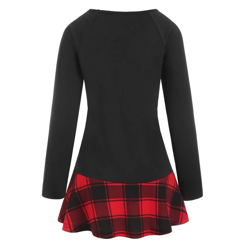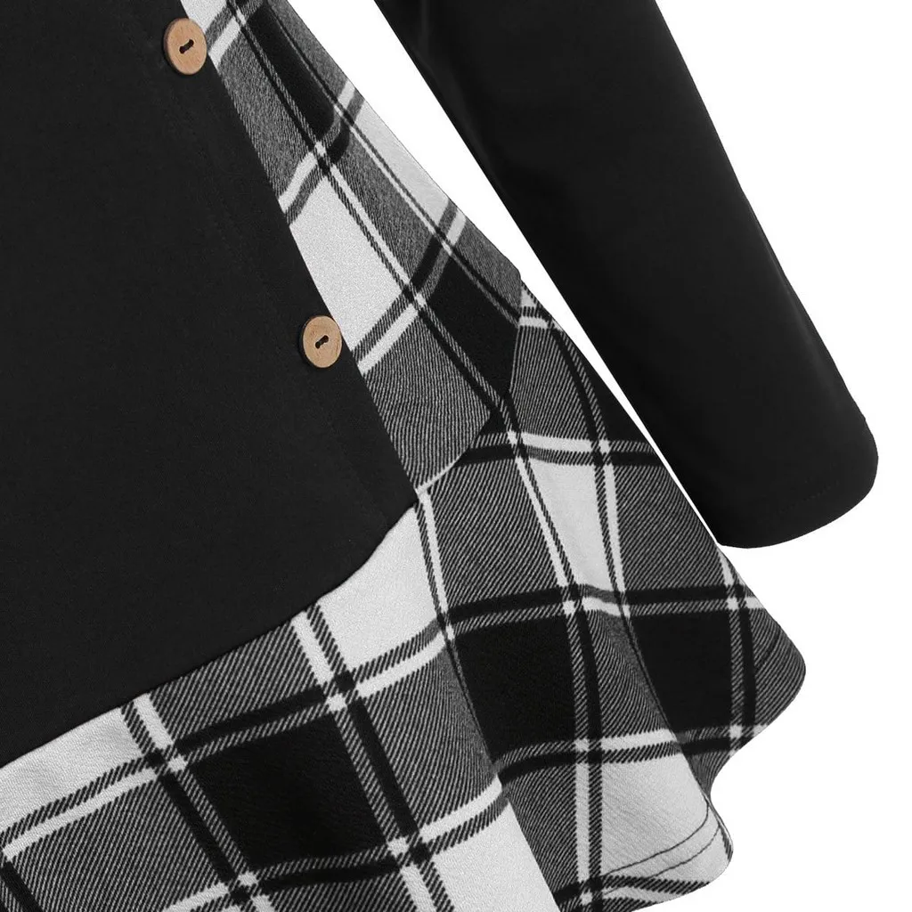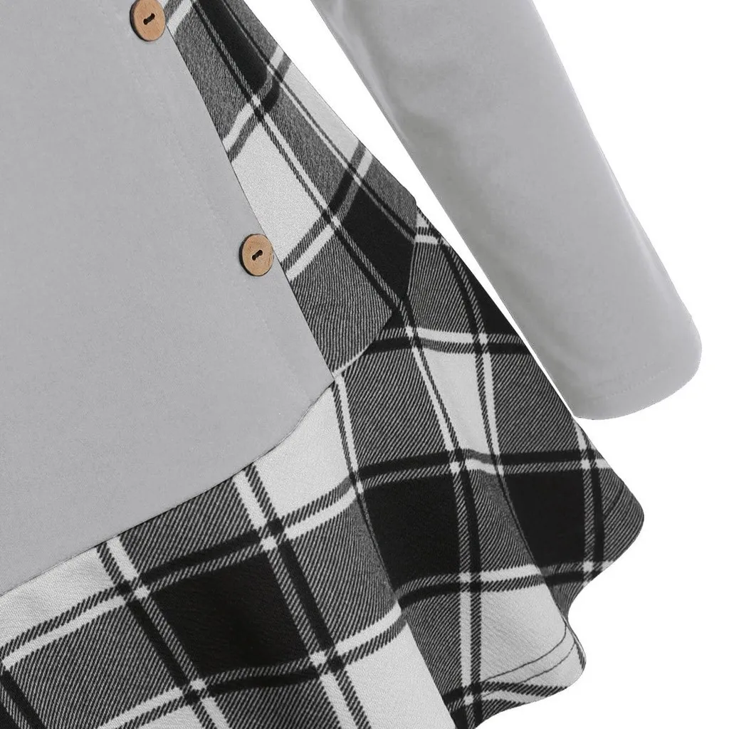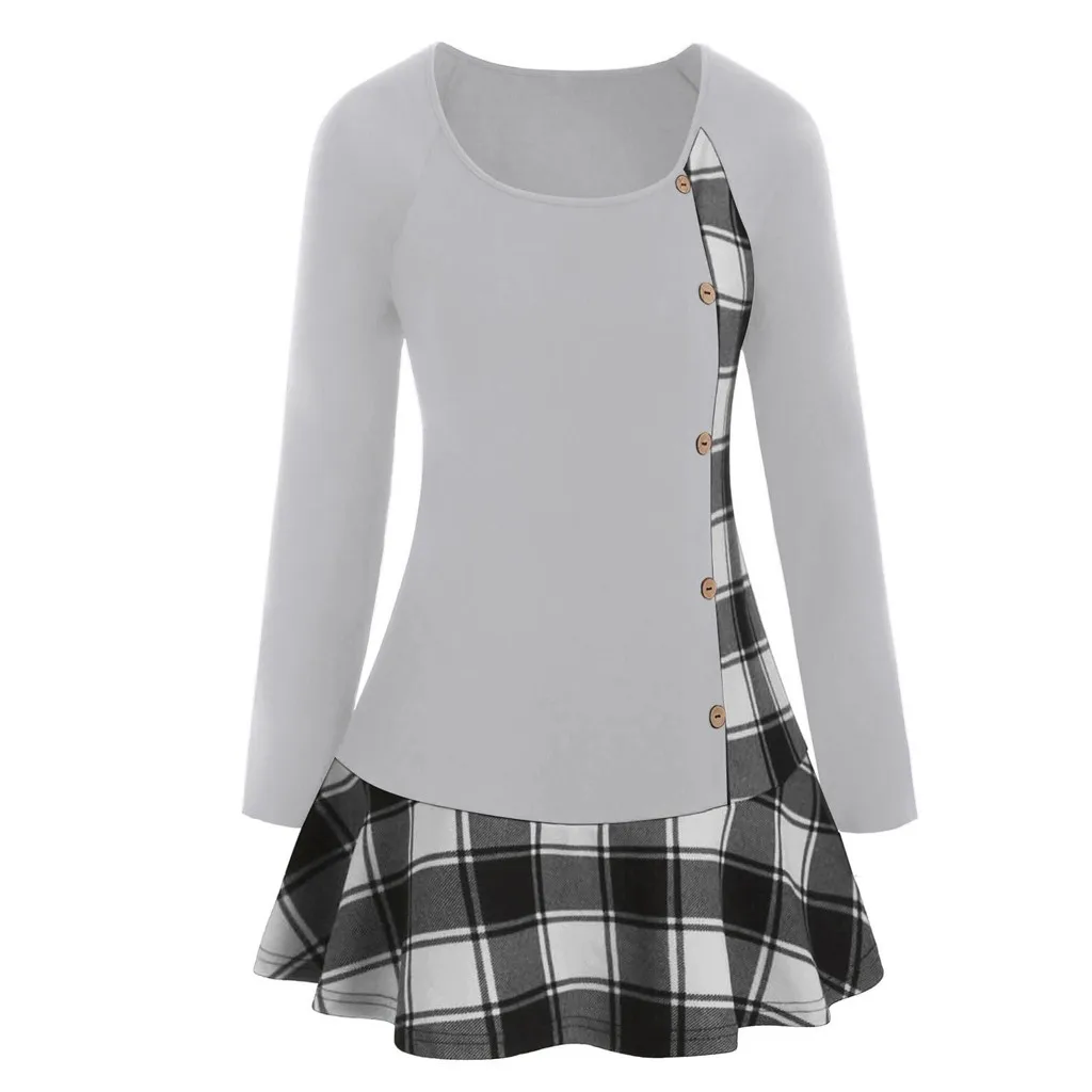 Женская клетчатая туника большого размера с воланами, клетчатая футболка с вырезом