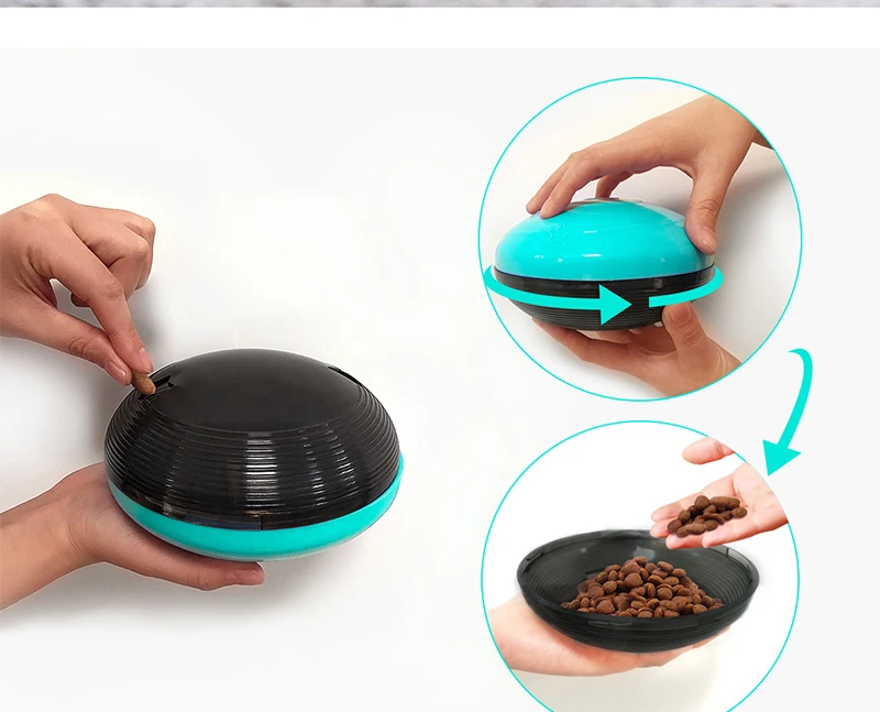 1. Нижняя оболочка может быть открыта, мягко вращая нижнюю оболочку, и вы можете положить собачью еду или закуски в игрушку. 2. Положите еду и закуски прямо в нижнюю скорлупу через отверстие внизу.