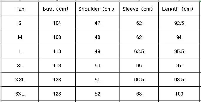 [Наши Размер XXXL] Бюст: 128 см/50,4 ", плеча: 52 см/20,4", рукав: 68 см/26,8 ", Длина: 100 см/39,3" (прибл.)