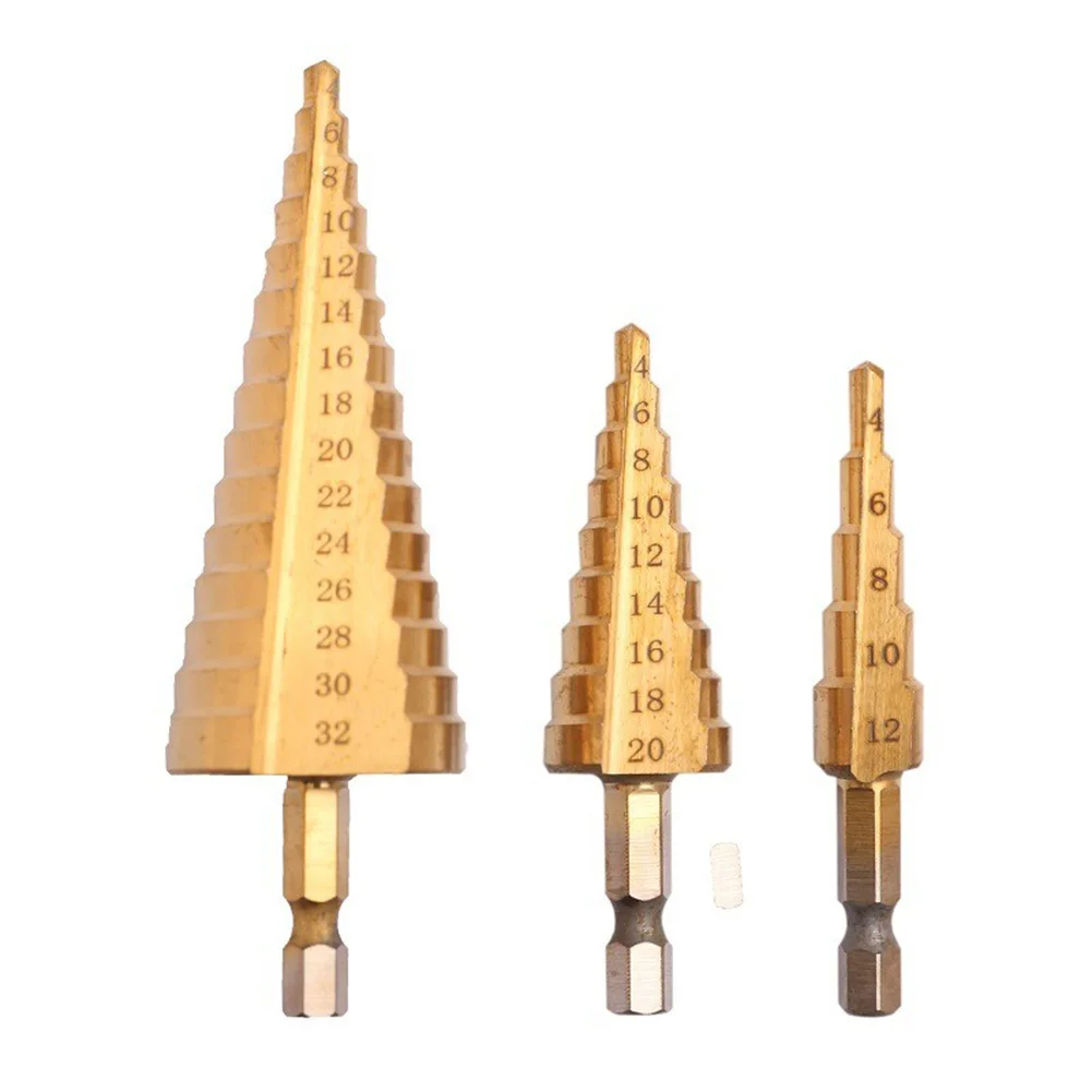 * 1. Тип сверла доступен в трех размерах 4-32 мм, 4-20 мм, 4-12 мм. * 2. Подходит для резки отверстий из различных материалов, включая сталь, бронзу, алюминий и так далее. * 3. HSS ступенчатый конус с титановым покрытием, перфорационный нож для отверстий, изготовленный из стали HSS, прочный, износостойкий и прочный. * 4. Поверхность покрыта титаном, чтобы уменьшить трение и тепло, что нелегко сломать по сравнению с обычными сверлами. * 5. Он надежно помещается в патрон электроинструмента и устраняет проскальзывание, а также быстрее удаляет чипы и позволяет частицам легко удаляться