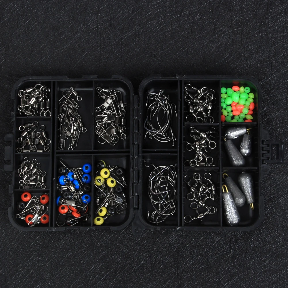 160 шт. рыболовные снасти коробка комплект Вертлюги грузило крючки бисер аксессуар