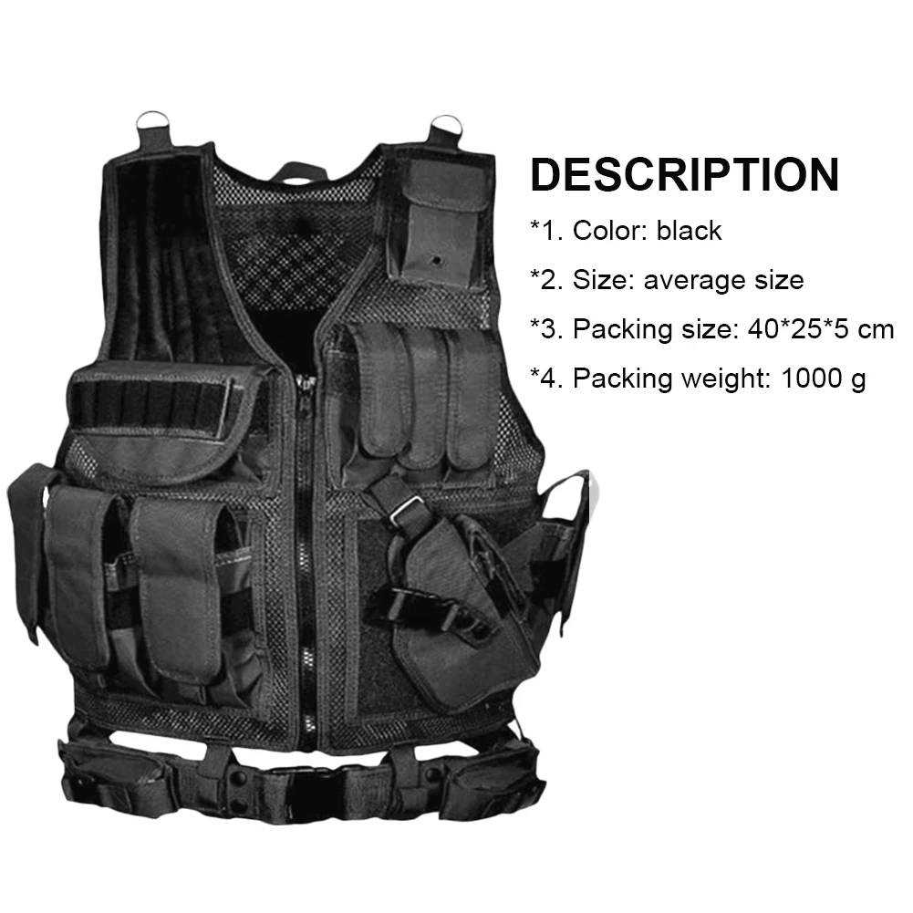 * 1. Этот тактический жилет изготовлен из прочного полиэфира высокой плотности 600D с сетчатым дизайном, который более дышащий и светильник при ношении.