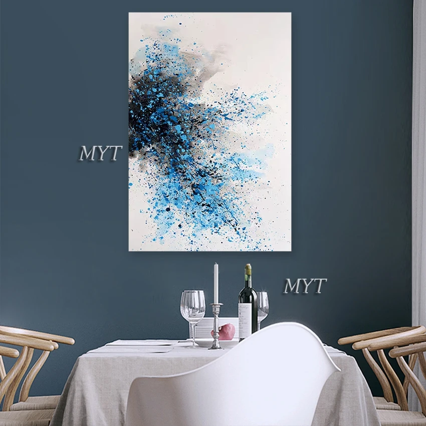 Синяя текстура акрилового холста 100% ручная роспись простая абстрактная картина маслом настенная декоративная панель холст искусство дешевые импортные работы