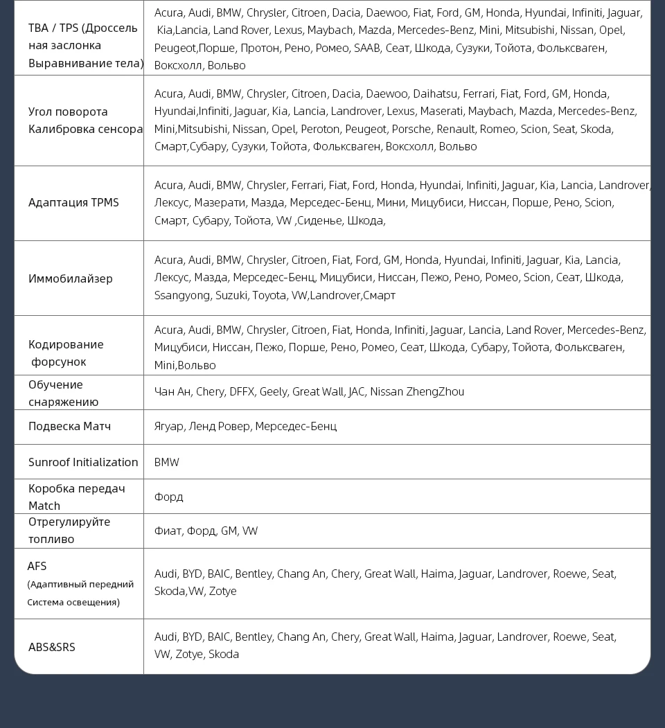 Вы можете выполнить 20 + специальных функций для вашего автомобиля, как показано на рисунке: