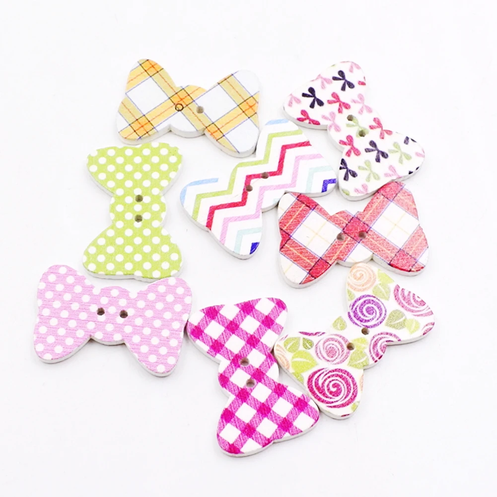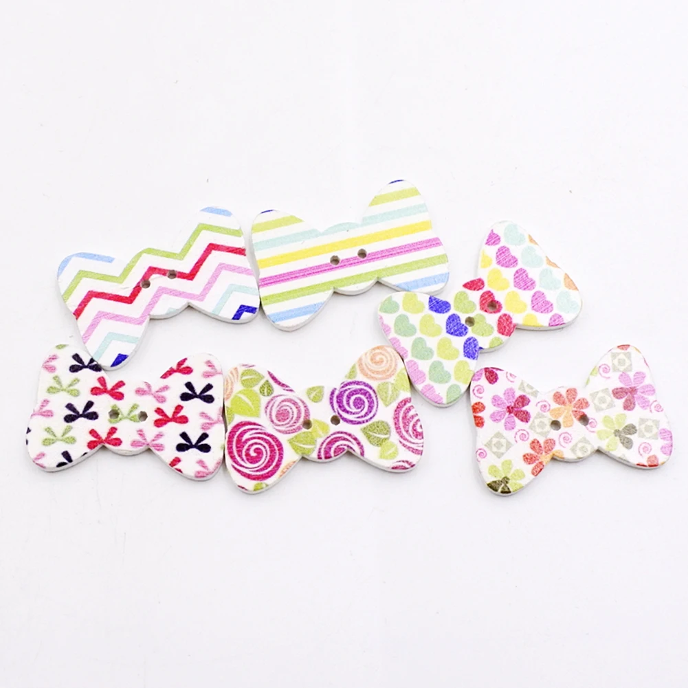 50 шт. бант в форме галстука смешанный цвет 2 отверстия деревянные DIY Швейные аксессуары