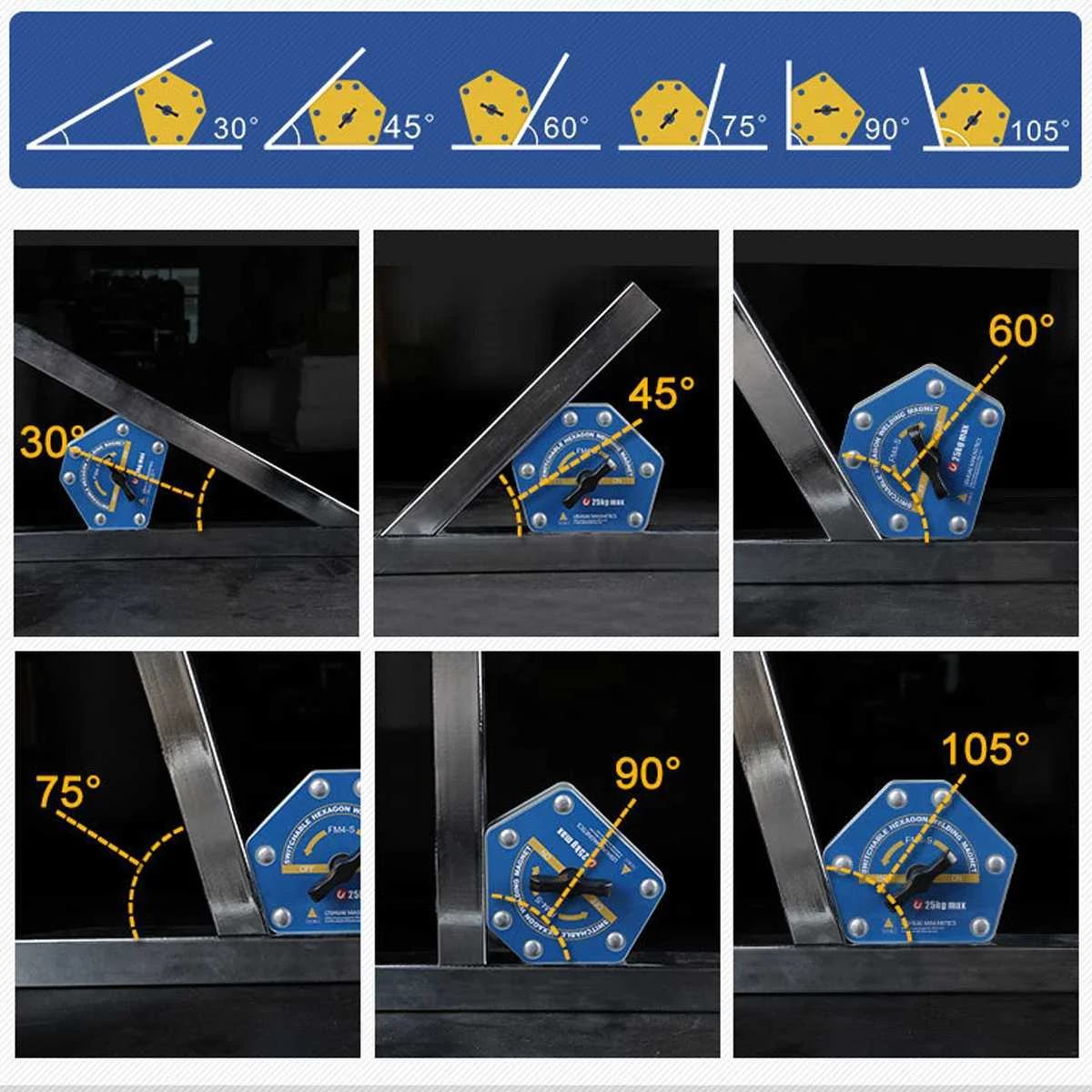 -Различные углы: под несколькими углами держатель можно использовать при 30 °/45 °/60 °/75 °/90 °/105 °.