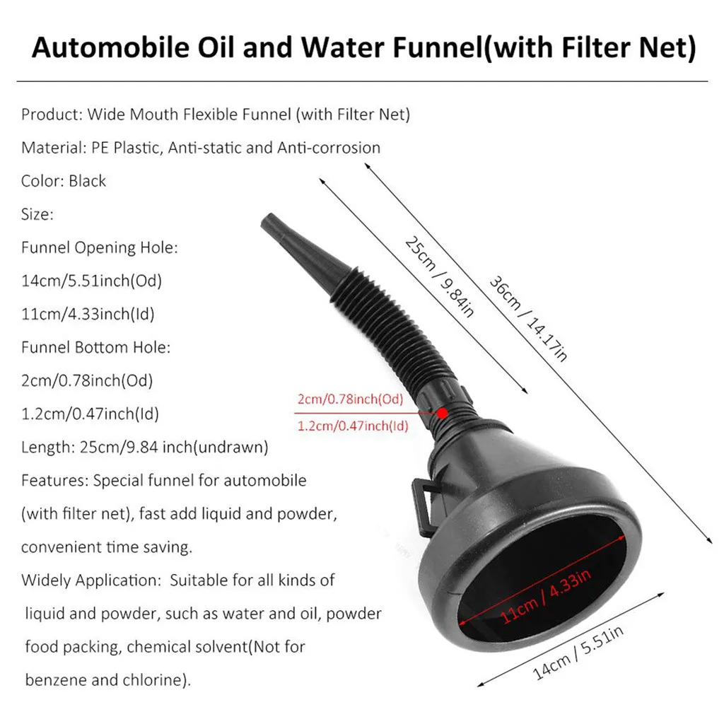 Гибкая Автомобильная Воронка имеет Сетчатый сетчатый фильтр, который фильтрует поврежденные частицы из жидкостей