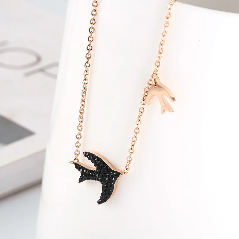 Ожерелье из нержавеющей стали с черной ласточкой, циркониевые стразы, птица, ювелирные изделия для женщин, розовое золото, Модный милый подарок