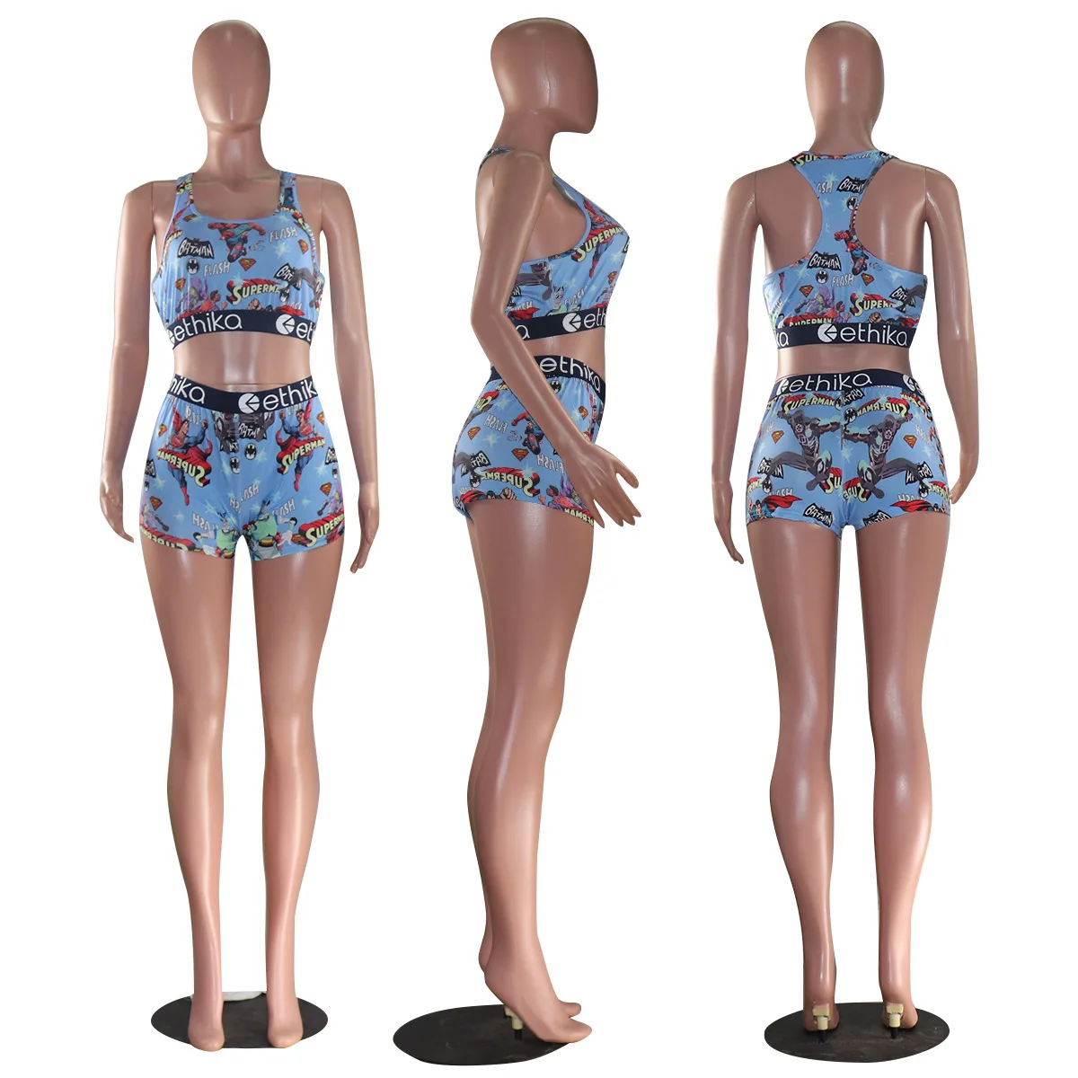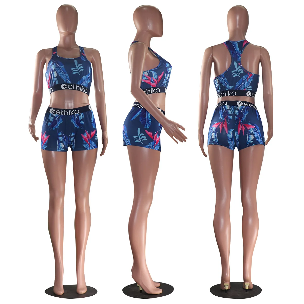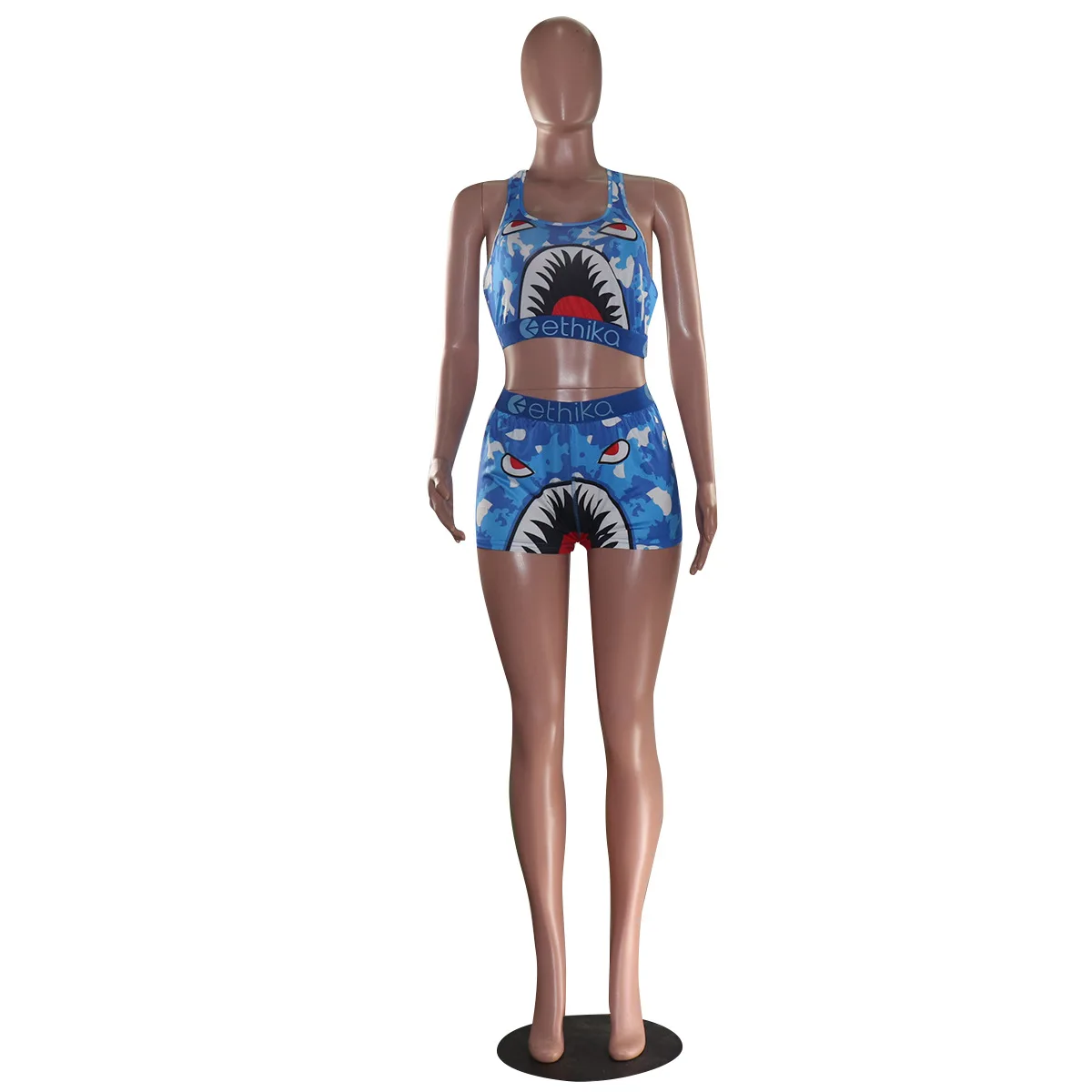 Женский бюстгальтер и набор трусов, камуфляж, Акула, сексуальный, из двух частей, на бретельках, без рукавов, спортивный укороченный топ, шорты для женщин, Ethika