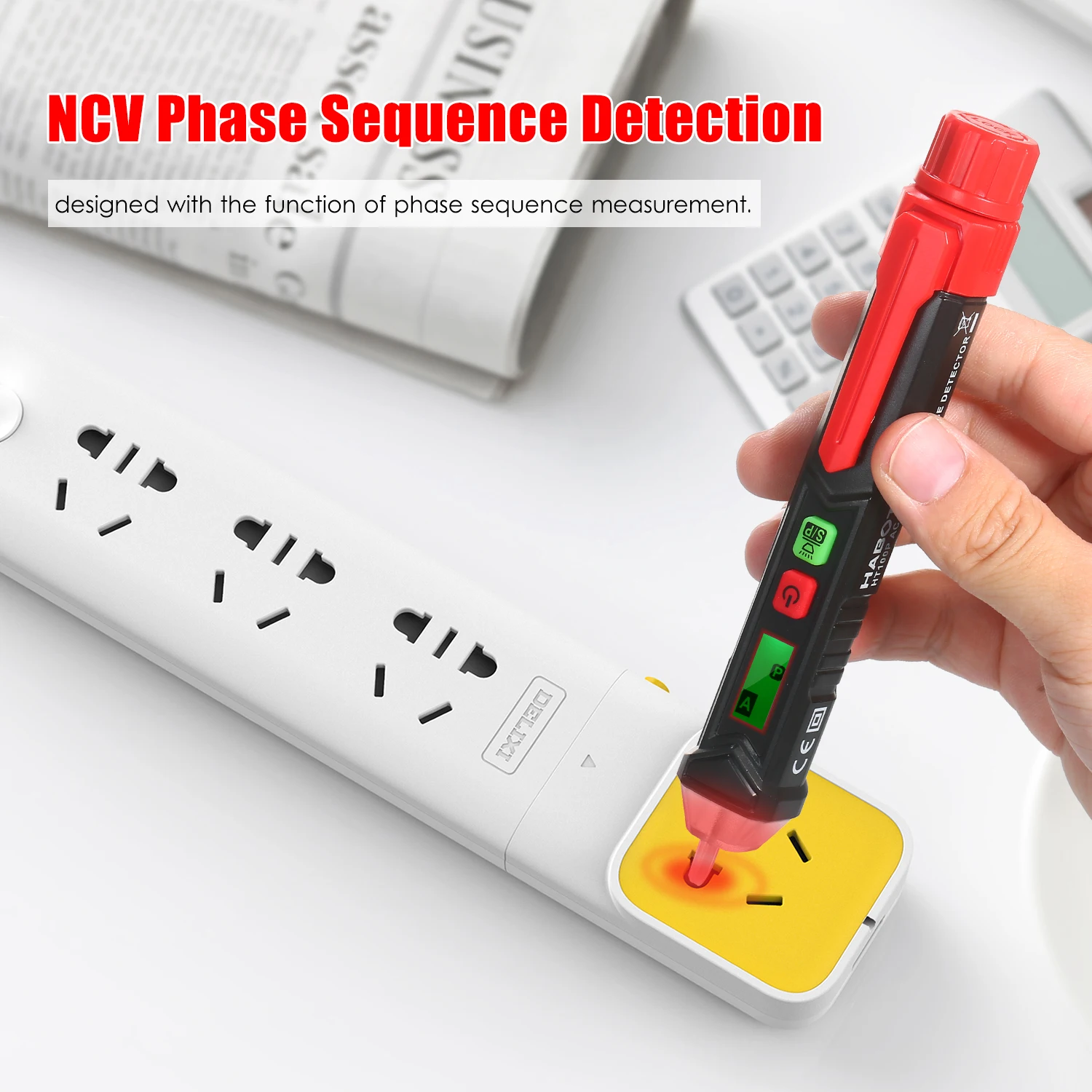 Портативный Датчик фаз переменного тока и напряжения в форме ручки может измерять последовательность фаз и обнаруживать напряжение переменного тока в 12 В ~ 1000 В и 48 В ~ 1000 В, это особенности безопасной бесконтактной конструкции, регулируемая чувствительность, звуковой сигнал и светильник, светодиодный светильник, простота в эксплуатации и высокая точность, Это профессиональное устройство для электротехников и промышленных электриков для работы с проводкой и кабелем.