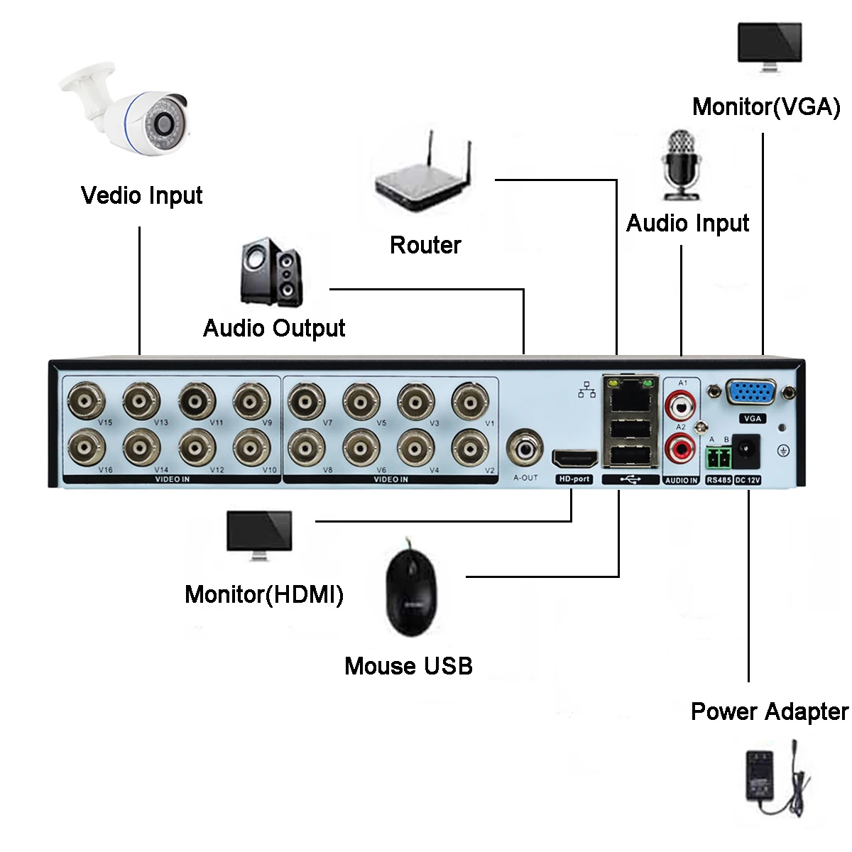Сетевой режим: Поддержка ip-камеры 720P/960P/1080P/3MP/5MP