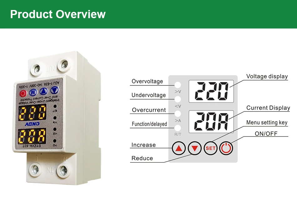 3. Защита от перегрузки по току 1A-63A (регулируемая) (по умолчанию: 40A)