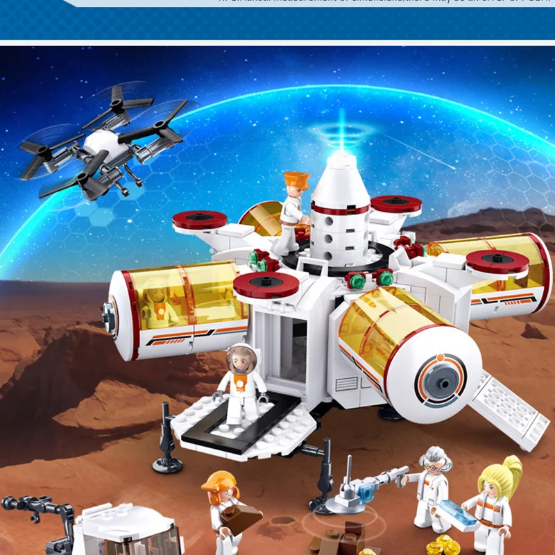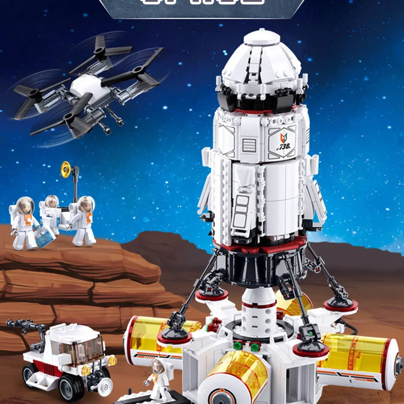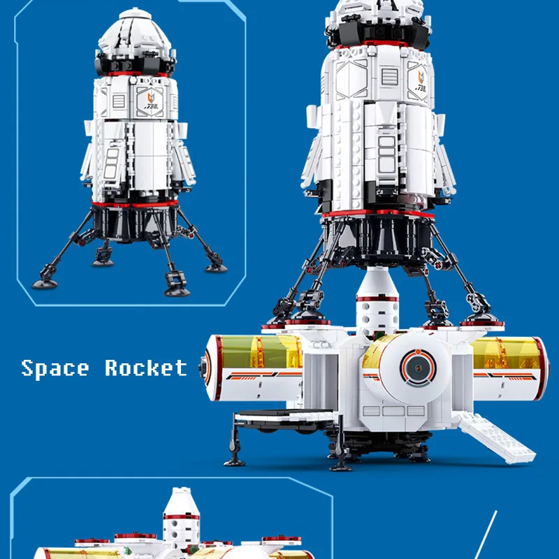 DIY Building Blocks With 3D Model Shuttle Launch Center Aviation Satellite Space Rocket Airship Children Toy
