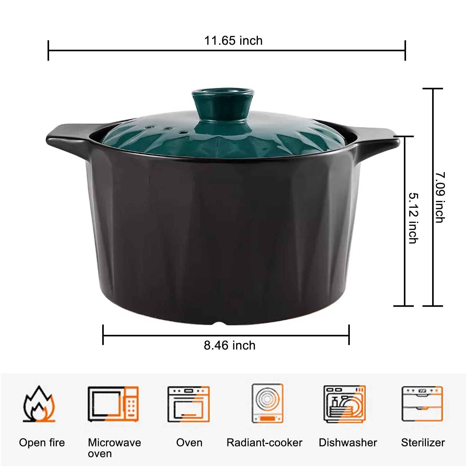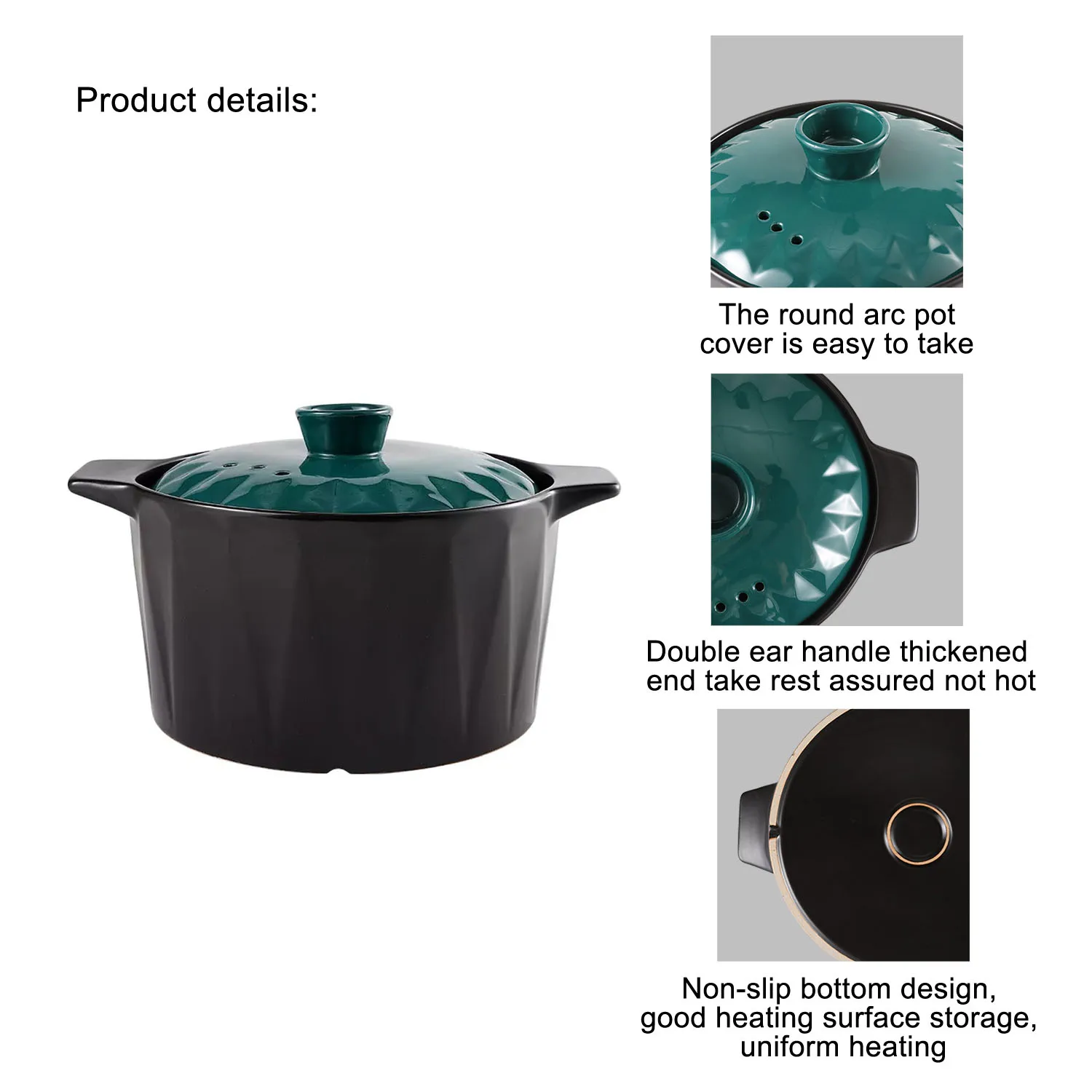Используйте на излучающей плите, открытой пожарной или газовой плите. Шкаф для дезинфекции, микроволновая печь, посудомоечная машина, духовка и морозильная камера. Легко моется керамическая кастрюля с крышкой, Паровая вентиляция на крышке. Используется в качестве кухонной посуды, посуды и хранения пищевых продуктов, быстро снимается и легко очищается поверхность для приготовления пищи. Размер-7 дюймов высокий: 3л Средний суповый горшок, готовка для кастрюли, супа, риса, подходит для 2-4 человек.