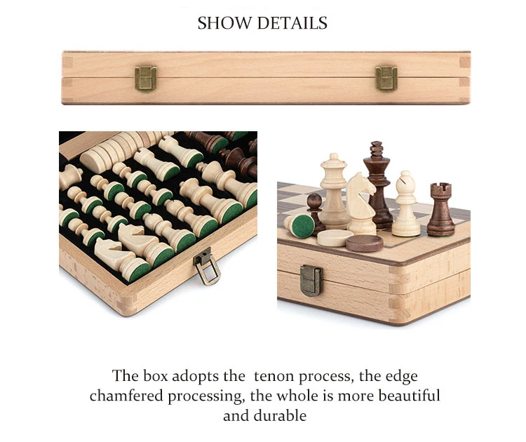 New Top Grade Refined Wooden Folding Large Chess Set Checkers Solid Wood Maple Chessboard Entertainment Board Game Children Gift