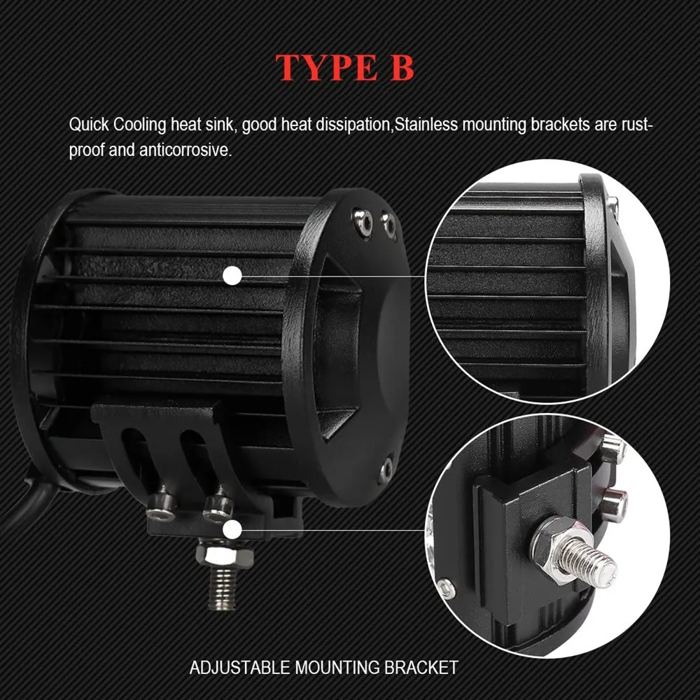 С регулируемым монтажным кронштейном рабочий светильник может регулироваться примерно на 45 градусов, что облегчает изменение направления. Широкое применение: светильник может быть совместим практически со всеми джипами, 4x4, грузовиками, мотоциклами, внедорожниками, квадроциклами, автомобилями, лодками и т. д. Много использования в помещении и на открытом воздухе: садовый светильник ing, задний светильник ing, задний светильник, внедорожный светильник ing, строительный светильник ing и так далее.Комплектация: