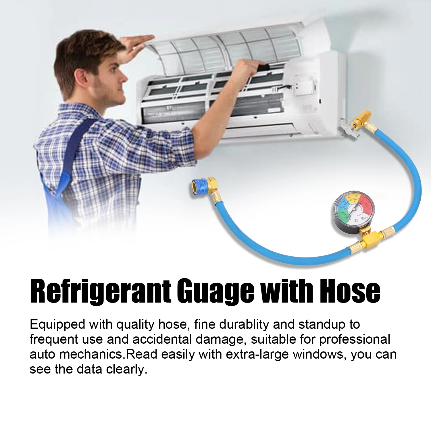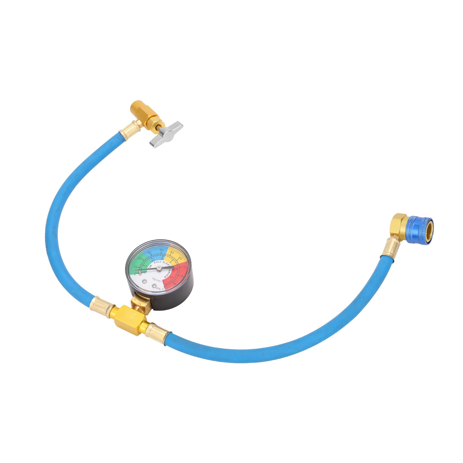 Это своего рода качественный хладагент mwter guage с фторидом, добавляющим шланг. Он может добавить хладагент R134a для автомобилей, стабильный и высокопроизводительный. Оснащена метром, диапазоном 0-100psi, и легко просматривать во время использования. Резьба 1/2, специально разработанная для Европы и Америки. Подходит для фиксации систем кондиционирования воздуха в автомобиле и других систем охлаждения, таких как холодильники. Вы можете попробовать.