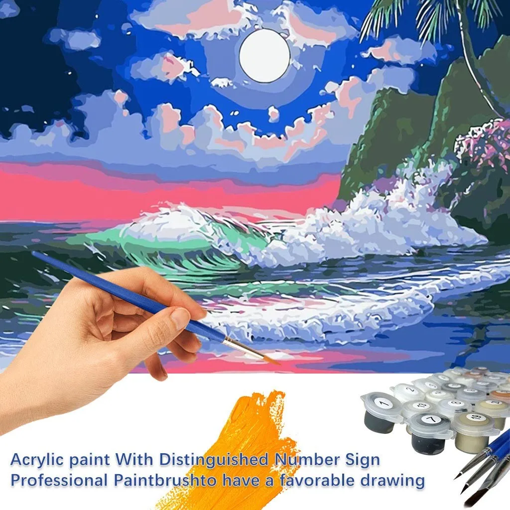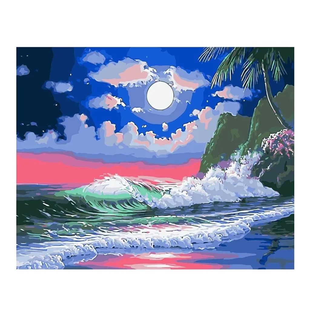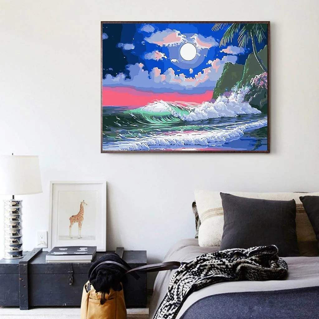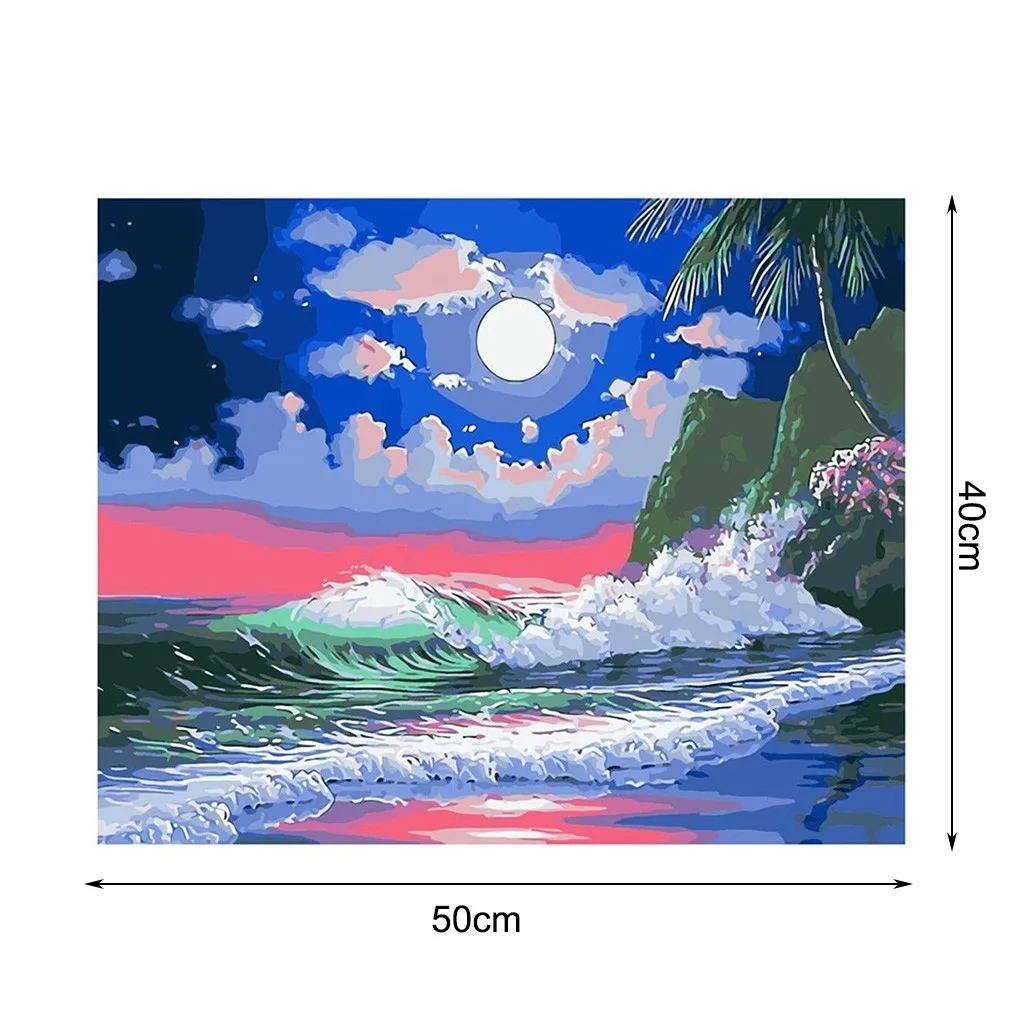 DIY digital oil painting color painting Night tide spray with Set pigment/1PC drawing/3PC brush/2PC Hook/2PC nail 40X50cm