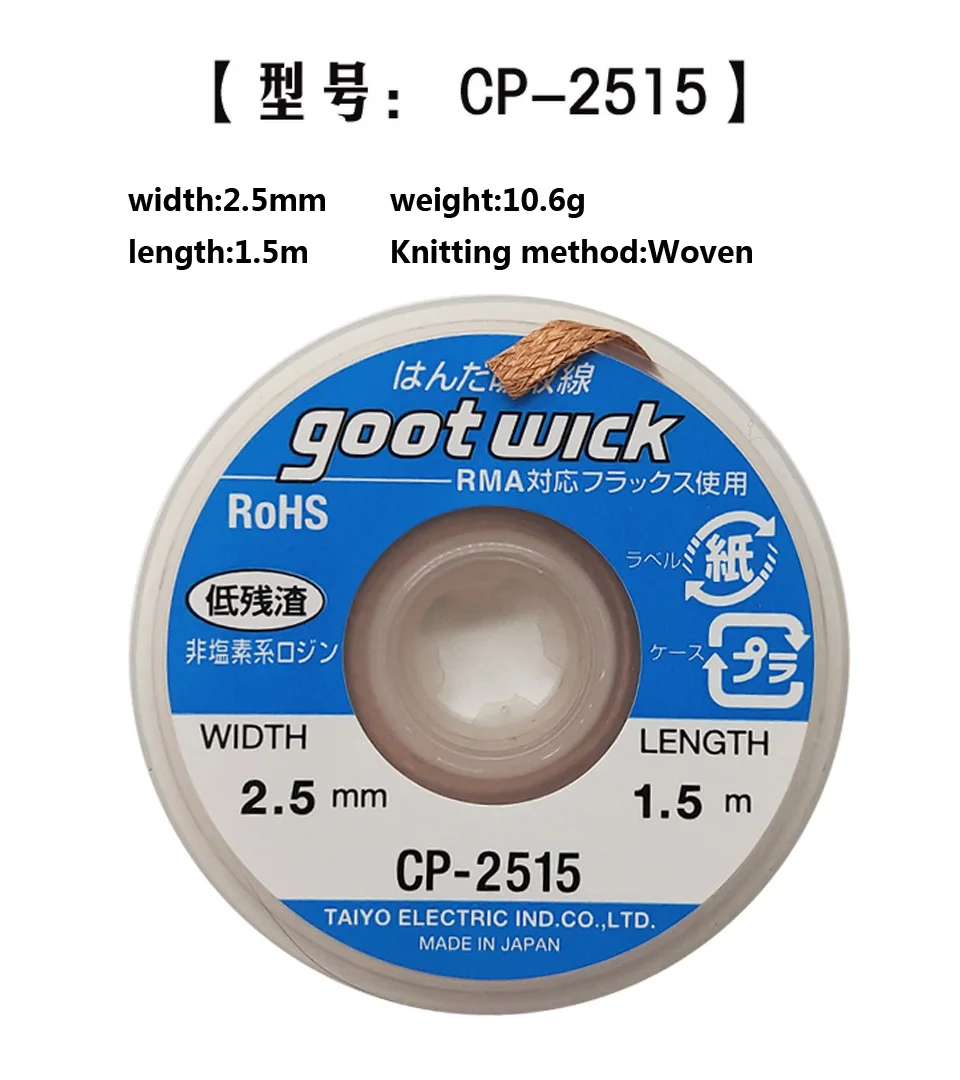 -- Используется для удаления избыточного припоя. -- Высокими антиокислительными свойствами, анти-коррозия. -- Тип: устройство для удаления припоя -- Посылка Вес: около 8 г -- Длина: 1,5 м -- Ширина: 1,5 мм 2,0 мм 2,5 мм 3,0 мм 3,5 мм -- Материал: медь Посылка: 10 x проволока для демонтажа