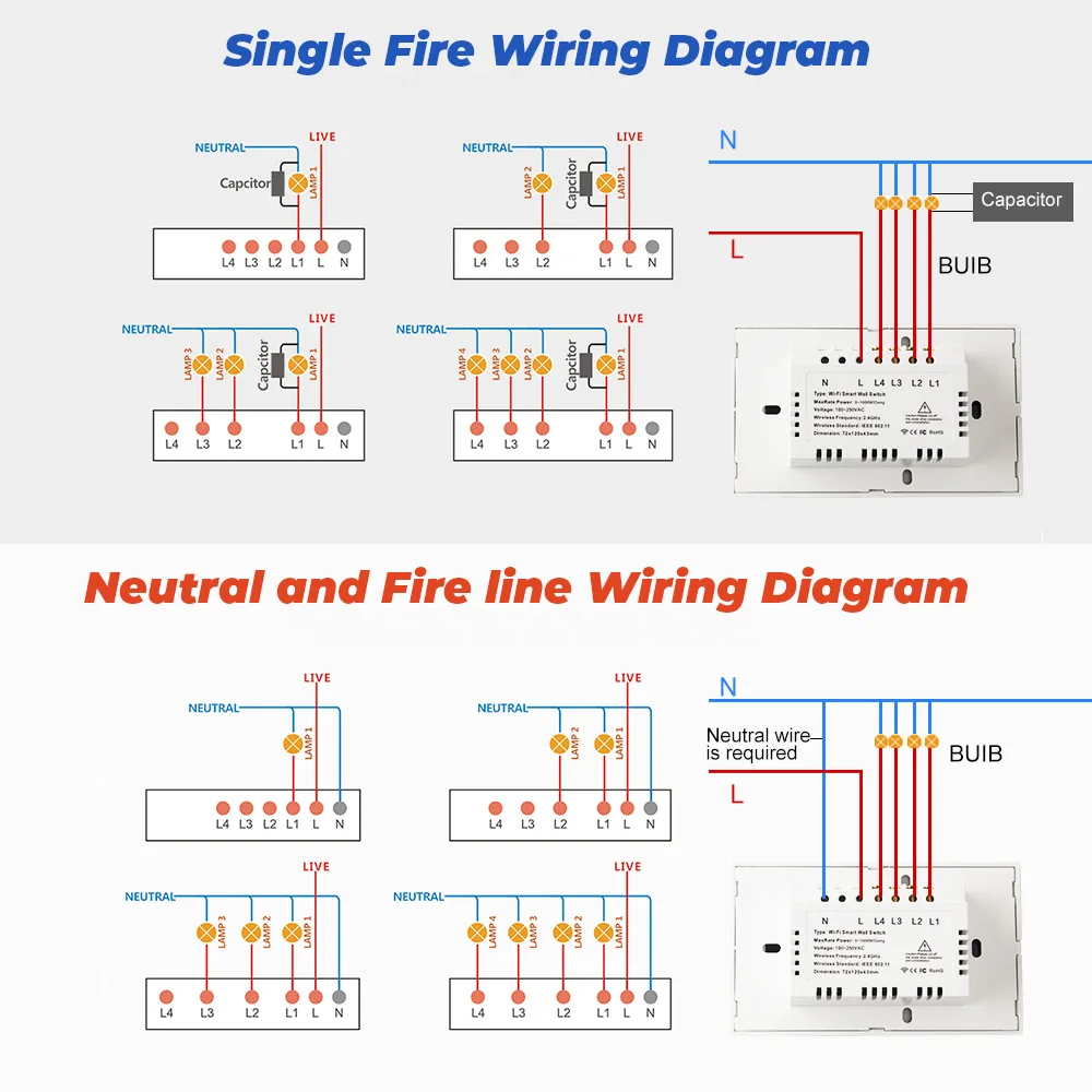 4. [Wiring mode]: neutral fire + single fire general design, any family can use (with or without neutral wire can be used)