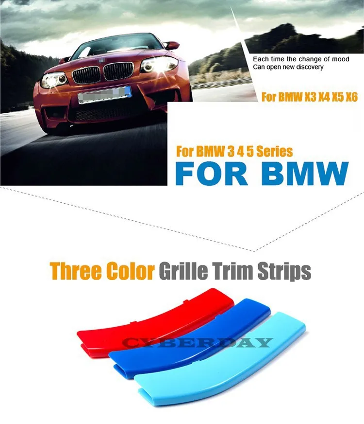 Особенности Один набор 3D ABS накладки M-Colored Grill Trim для BMW X3 X4 X5 X6 3 4 5-Series M-sport трехцветные полосатые чехлы Самоклеящийся Изготовлен из высококачественного АБС-пластика, не бумажные наклейки Подходит для отделки внешней решетки Совместимость Решетка: для BMW X3 X4 X5 X6 3 4 5-Series