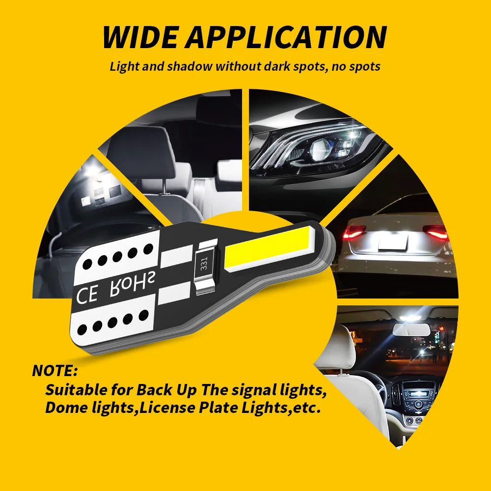 DXZ 150 шт. W5W светодиодный T10 светодиодный светильник Canbus 168 194 6000K белый для салона автомобиля купольный светильник парковочные огни светильник без ошибок авто 12В