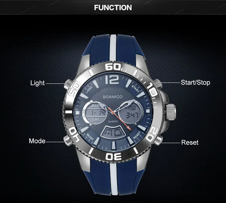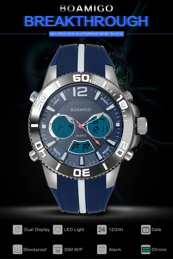 Мужские спортивные часы военные цифровые часы BOAMIGO брендовые кварцевые часы модные резиновые наручные часы 30 м водонепроницаемые Reloj Hombre