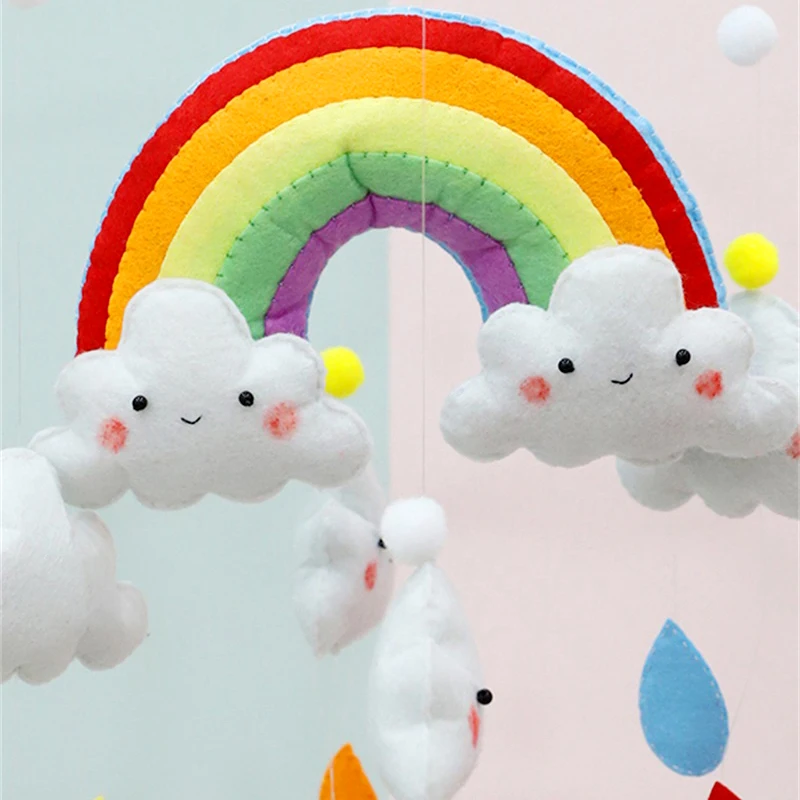 Name: Non-woven rainbow pendant Weight: 47 g Material:Nonwoven fabric Packing list: Nonwoven fabric The needle line Glue stick The line The little black pearl Red crayons The instructions Embroidery guy