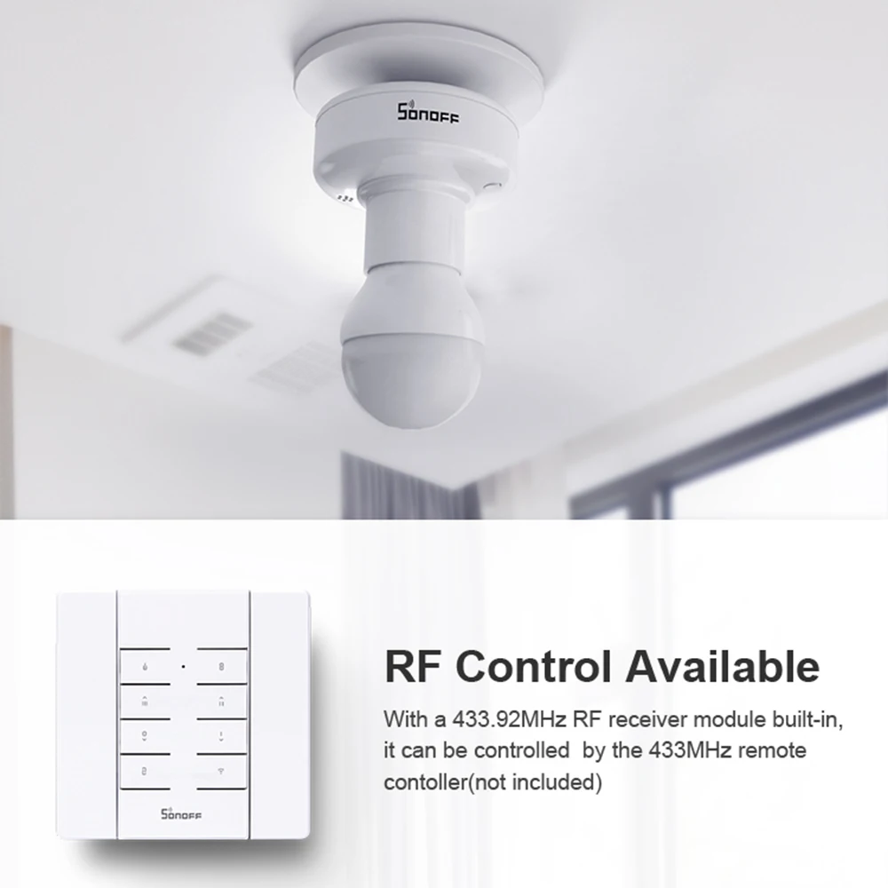 SlampherR2, Держатель смарт-лампы WiFi с винтовым основанием E27, используется, чтобы превратить вашу традиционную лампу в умную лампу, дает вам возможность управлять им с помощью телефона или голоса при сопряжении с Amazon Alexa или Google Assistant. Кроме того, пульт дистанционного управления SONOFF RM433. Поддержка функции синхронизации для автоматического включения или выключения во время установки, чтобы уменьшить ненужное потребление электроэнергии. С держателем смарт-лампы SlampherR2 подключенная лампа может быть включена или выключена через телефон, некоторые другие устройства, сопряженные с приложением eWeLink, также включены или выключены. Это Функция Смарт-сцены. Также доступны другие функции, такие как IFTTT, управление локальной сетью, управление доступом и статус включения питания. Следуйте SlamphR2, чтобы легко попасть в ваш основной умный дом!