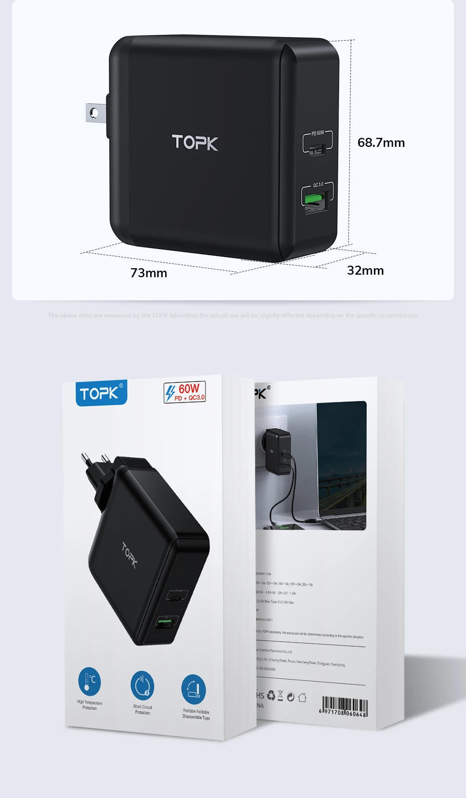 60 Вт PD + QC3.0 быстрое зарядное устройство