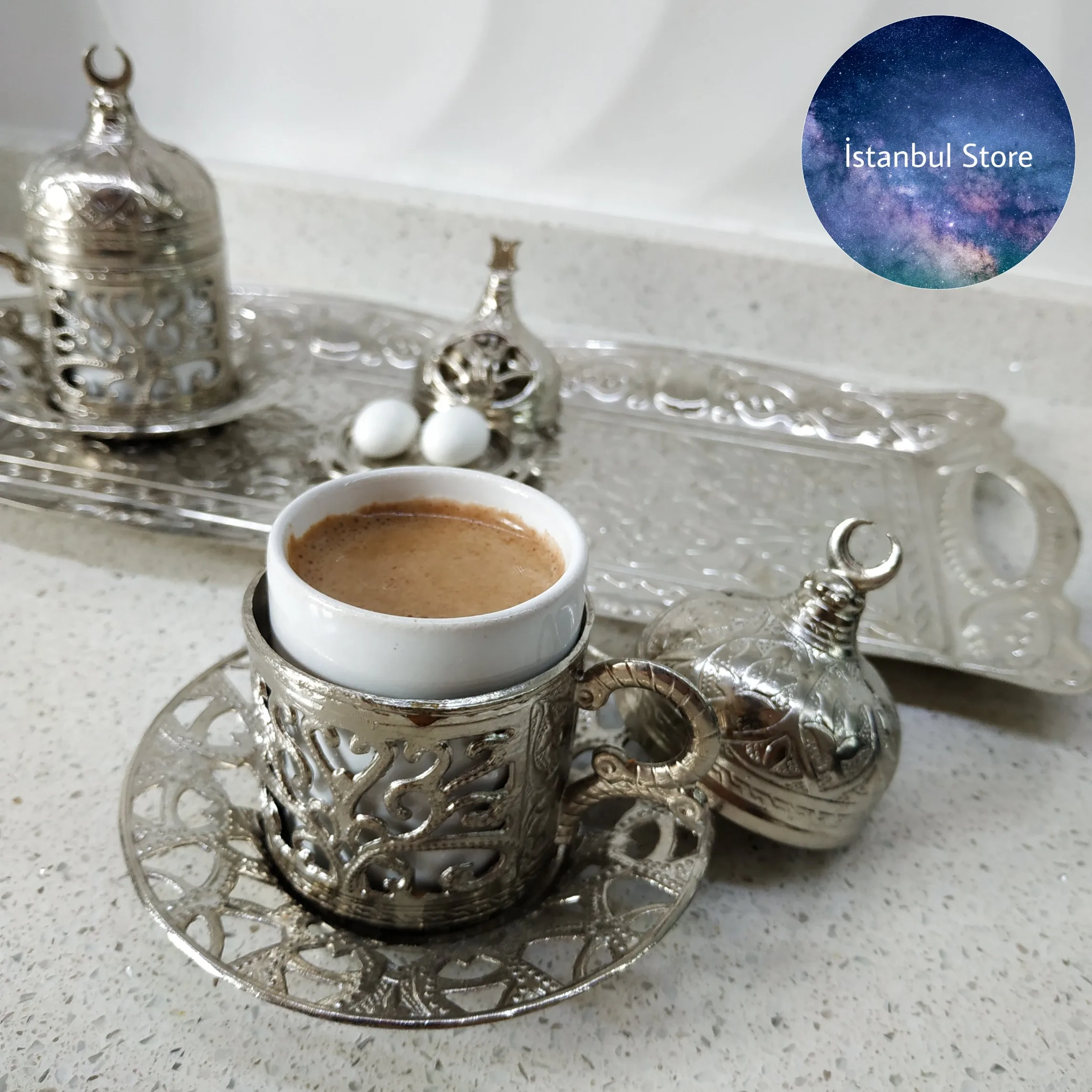Набор кофейных чашек серебристого цвета высокого качества ручной работы