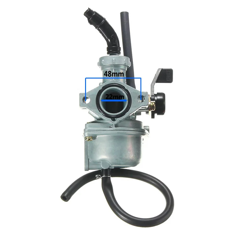 22 мм карбюратора: Диаметр впускного крепления: 22 мм Расстояние между болтами и отверстиями: 48 мм Диаметр листинга воздушного фильтра 38 мм Подходит для большинства 110cc 125CC китайских квадроциклов, Картинг с 4 тактный двигатель. Подходит для большинства китайских брендов, таких как TaoTao, SUNL, Buyang, Coolsports, AIM-EX, Roketa, Kazuma и т. д.