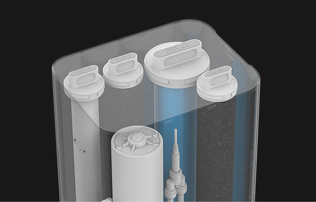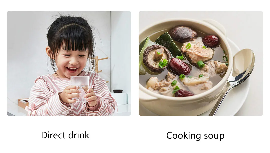 Использование технологии фильтрации обратного осмоса с высокой пропускной способностью. Нет резервуара для хранения воды, чтобы предотвратить вторичное загрязнение.