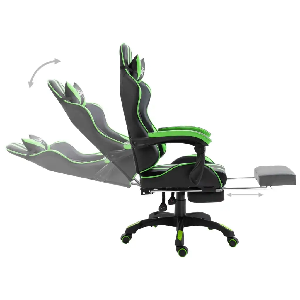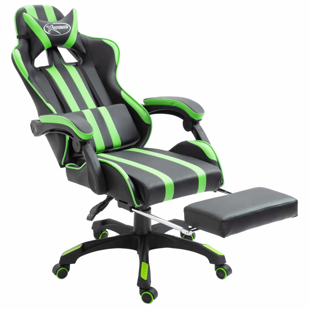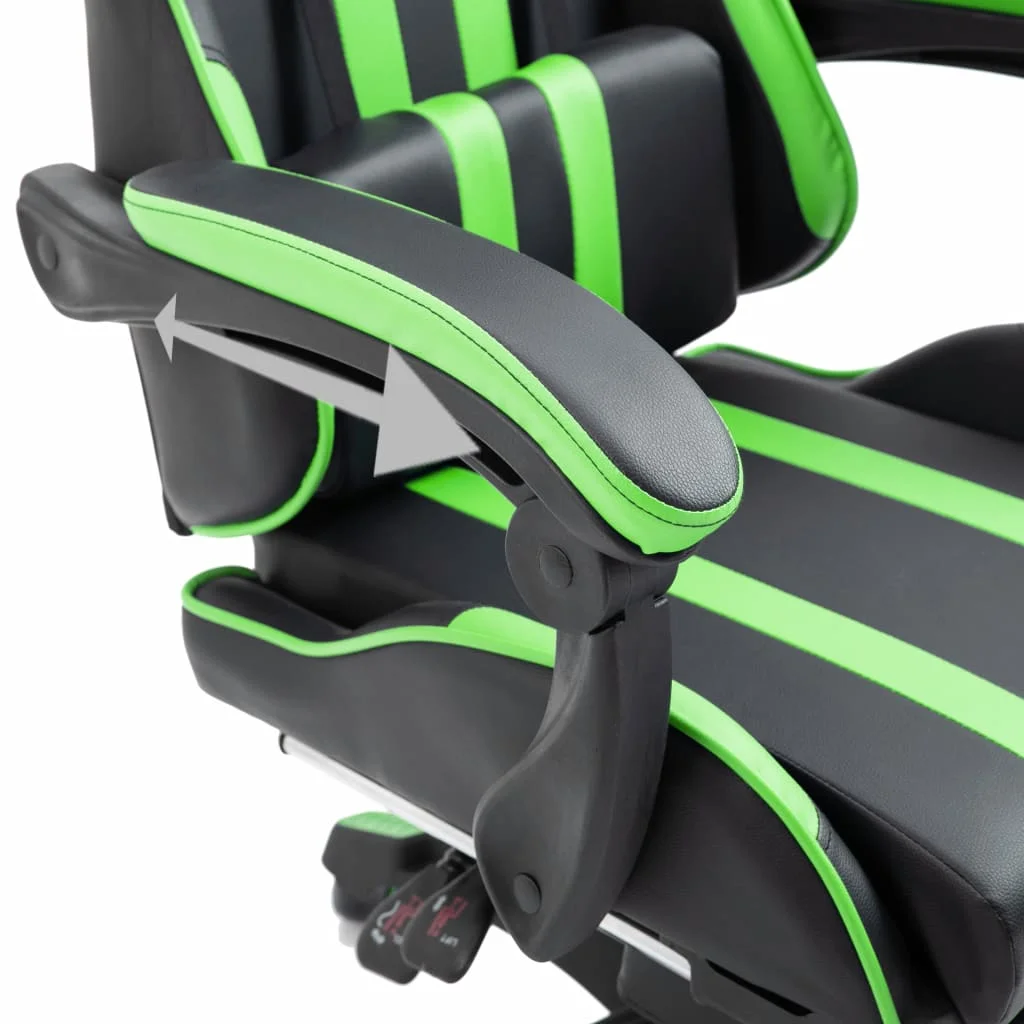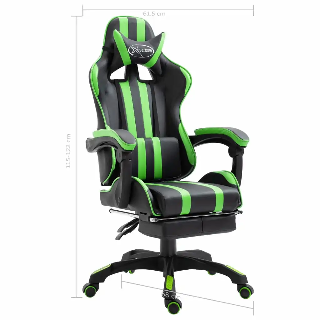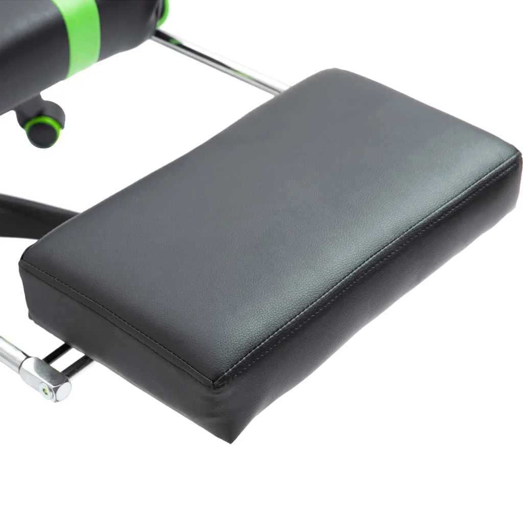 Цвет: черный и зеленый Размеры: 61,5x68 x (115 - 122) см (Д x Ш x В) Размеры обивки: 30x18x5 см (Д x Ш x Г) Размеры подушки: 29x20x8 см (Д x Ш x Г) Диаметр рулона: 50 мм С газовой пружинной системой 80 мм Материал: ПУ + ПВХ + ПП С механизмом регулировки и выдвижной подставкой для ног Бренд: vidaXL